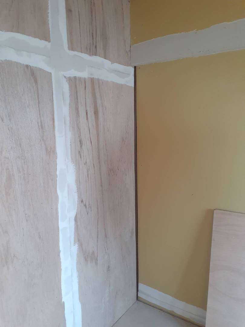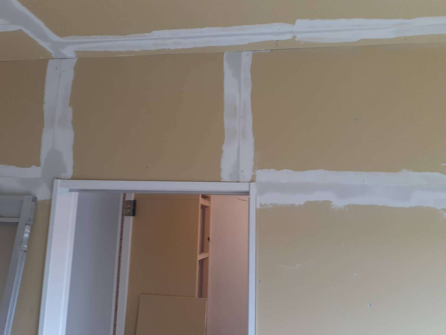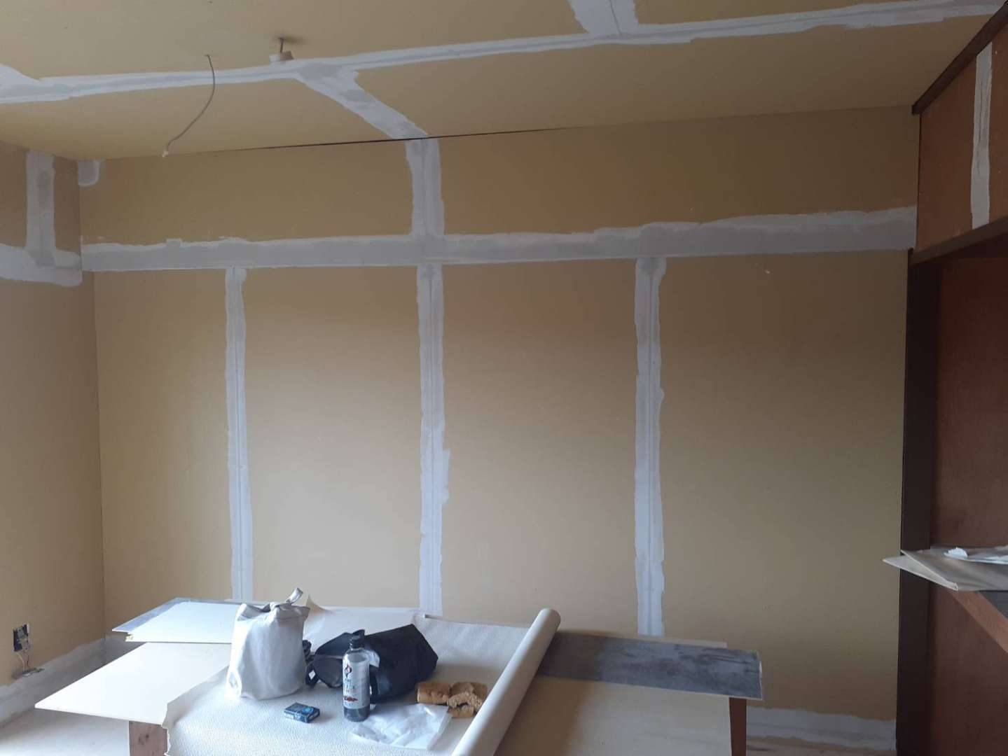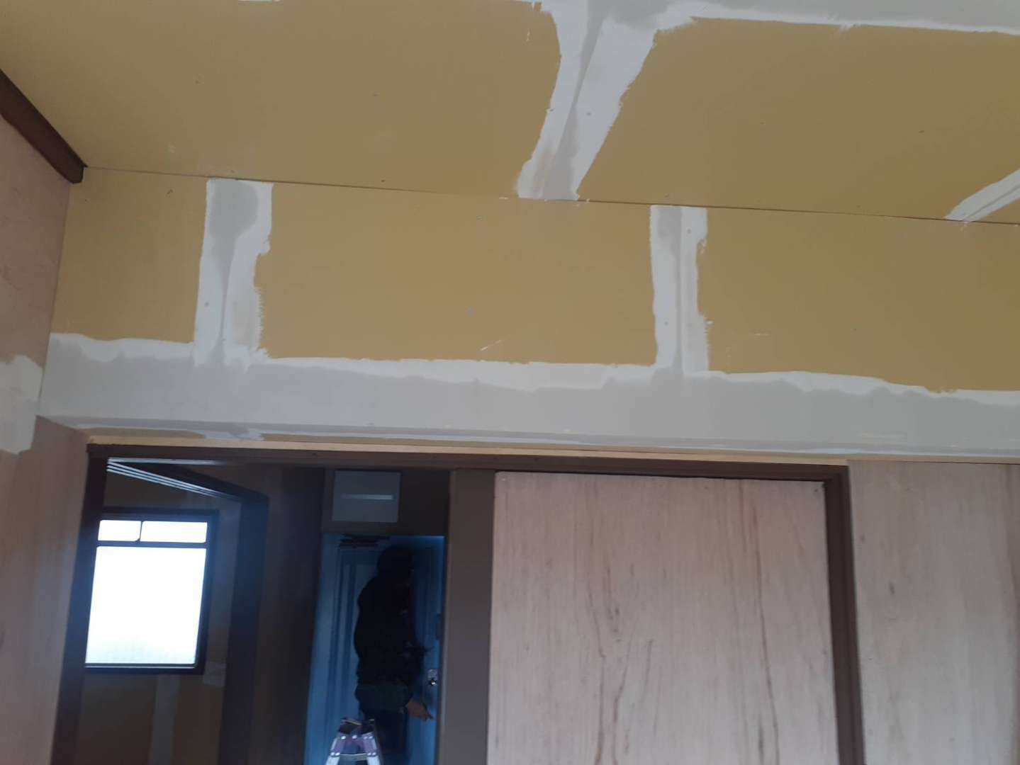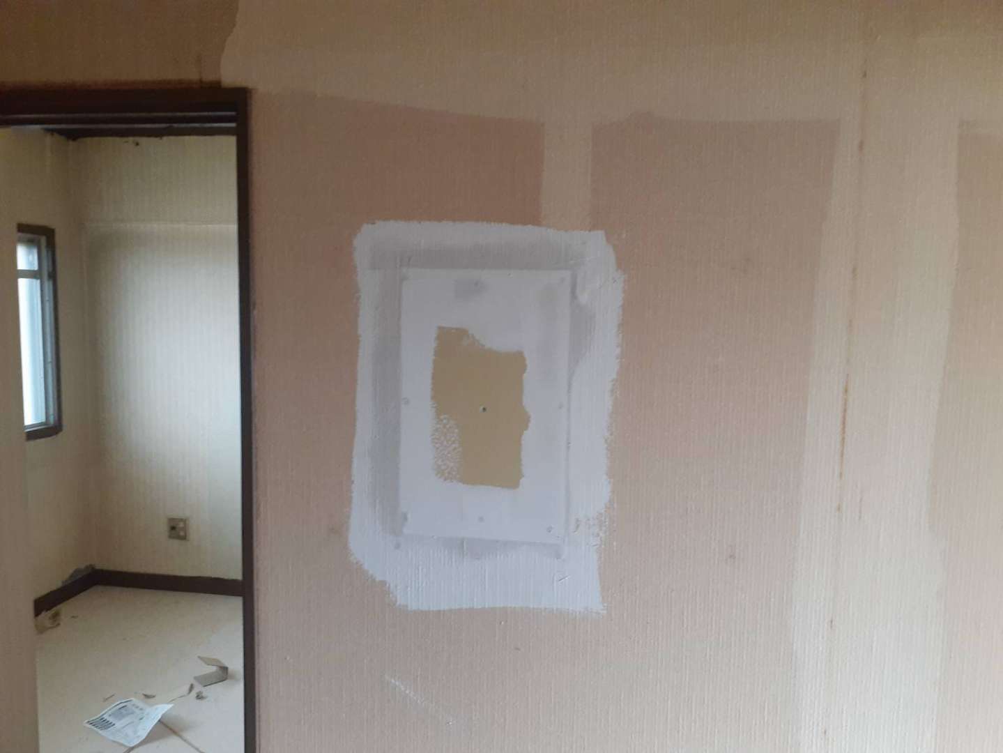 多治見市Fマンションの昨日の作業は、室内クロス貼り前の下地パテ調整作業を行っています。