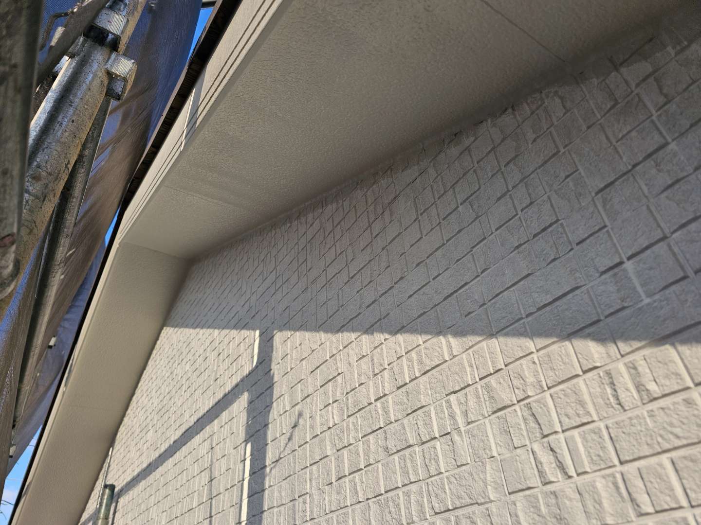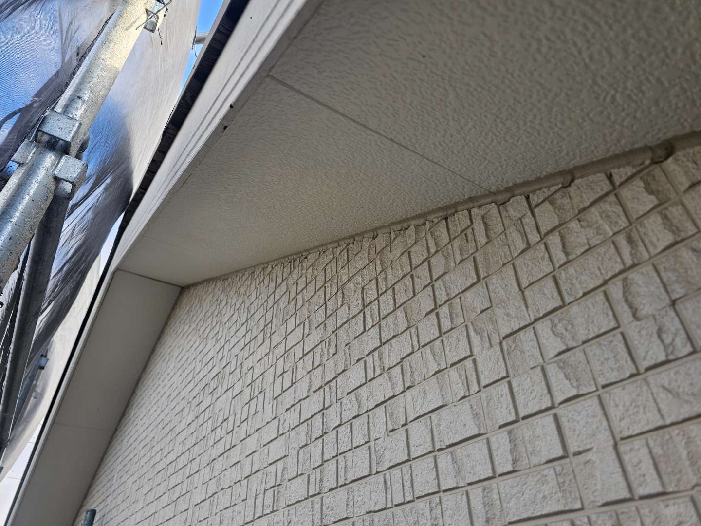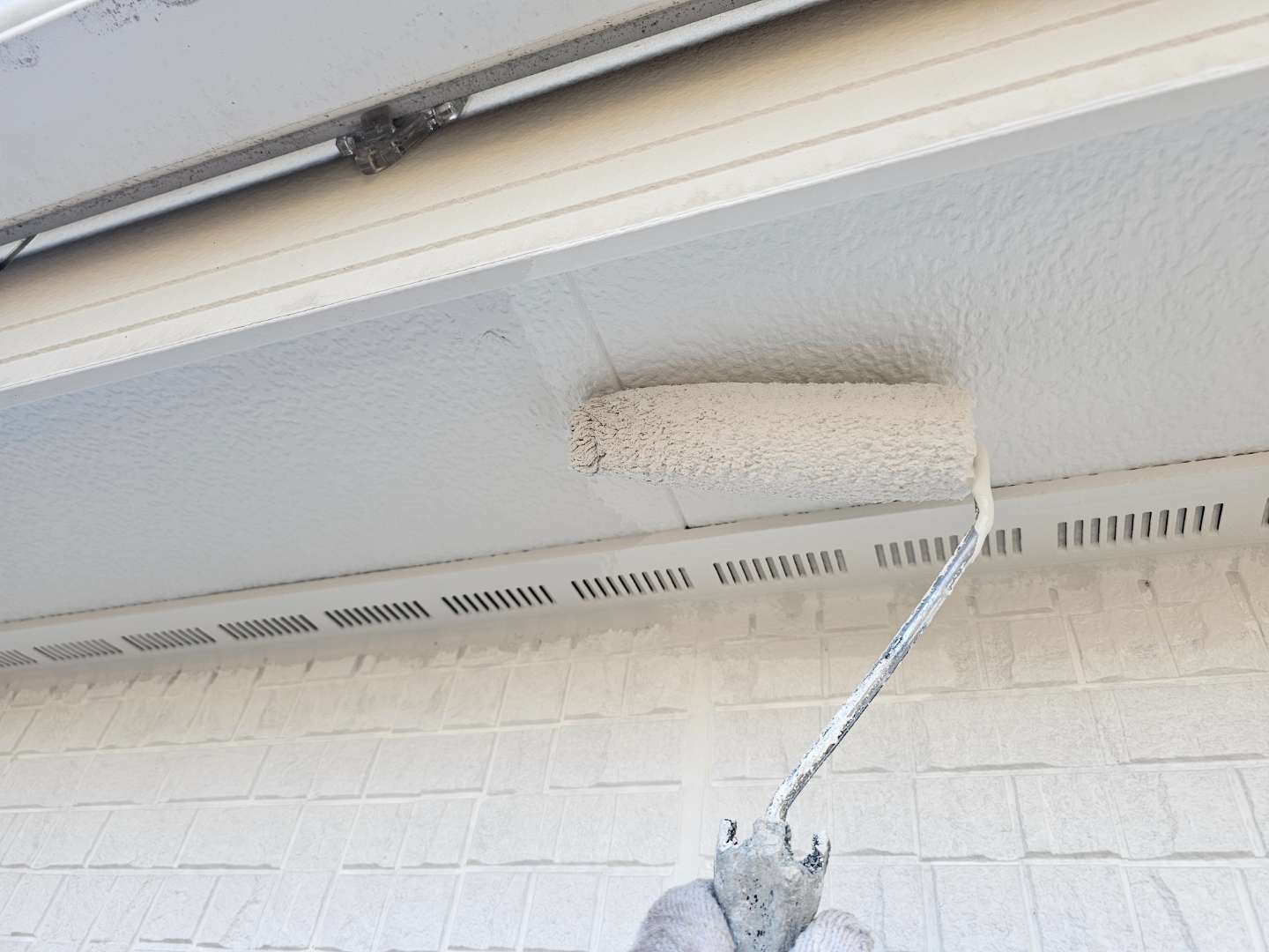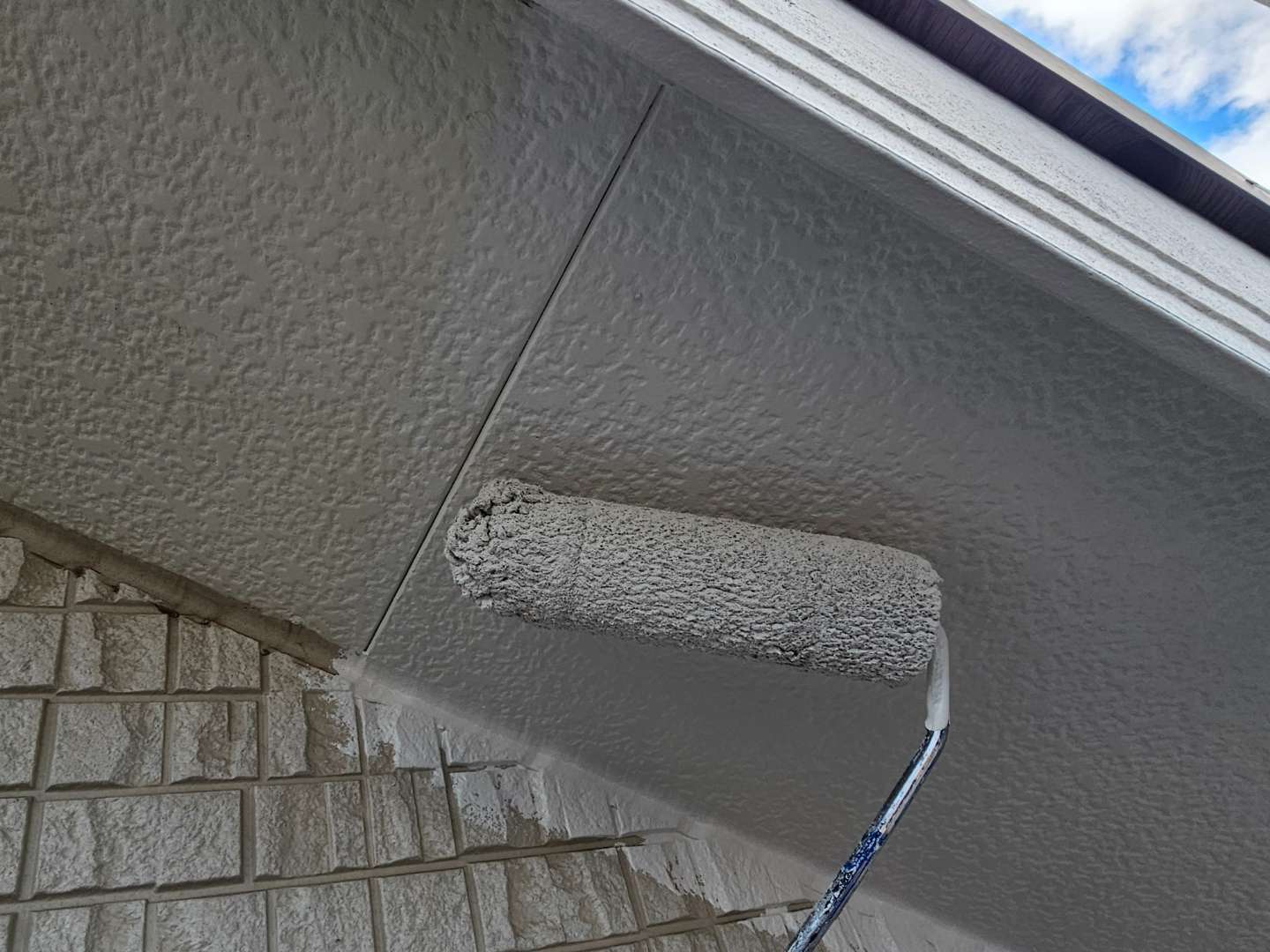 清須市K様邸の昨日の作業は、外壁の下塗り塗装、軒天部に1回目、2回目塗装、屋根の下塗り塗装作業を行っています。