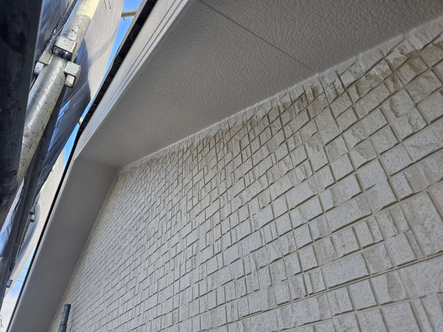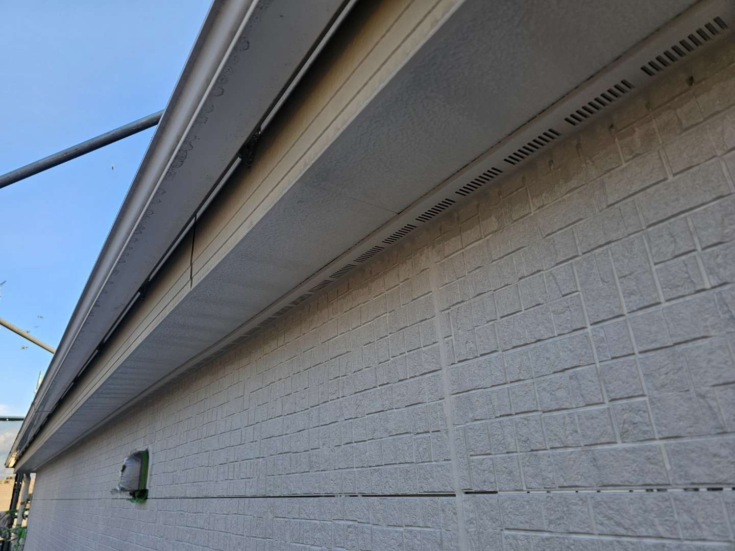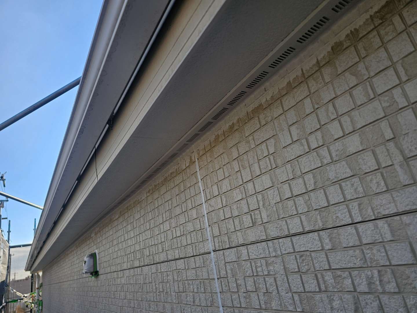 清須市K様邸の昨日の作業は、外壁の下塗り塗装、軒天部に1回目、2回目塗装、屋根の下塗り塗装作業を行っています。