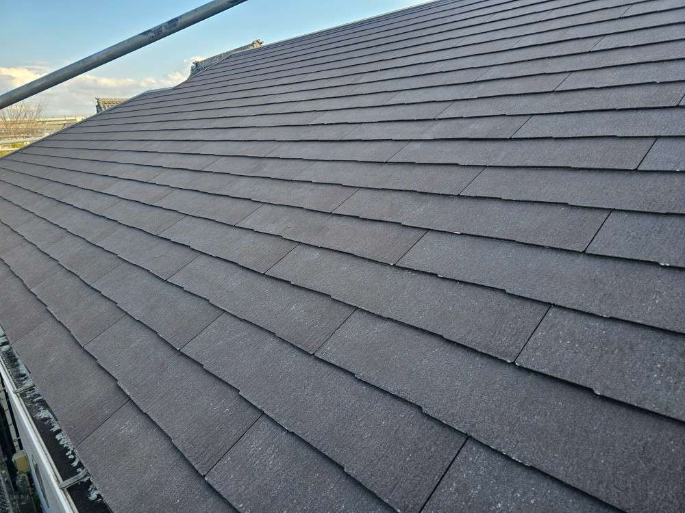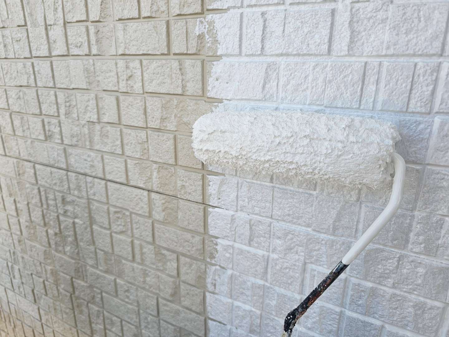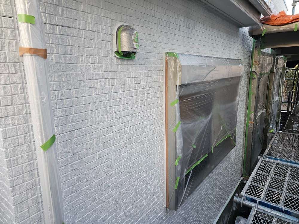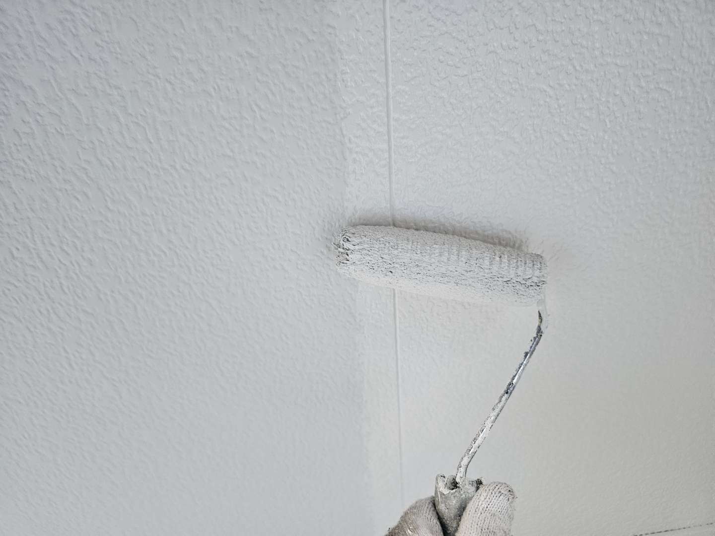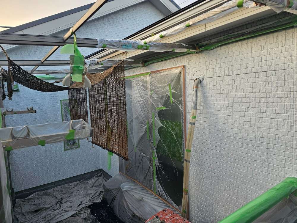 清須市K様邸の昨日の作業は、外壁の下塗り塗装、軒天部に1回目、2回目塗装、屋根の下塗り塗装作業を行っています。