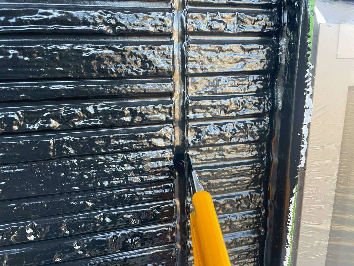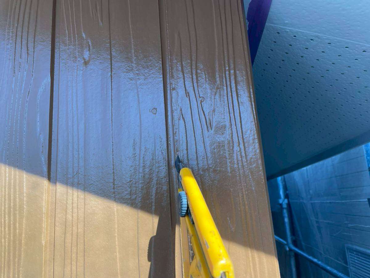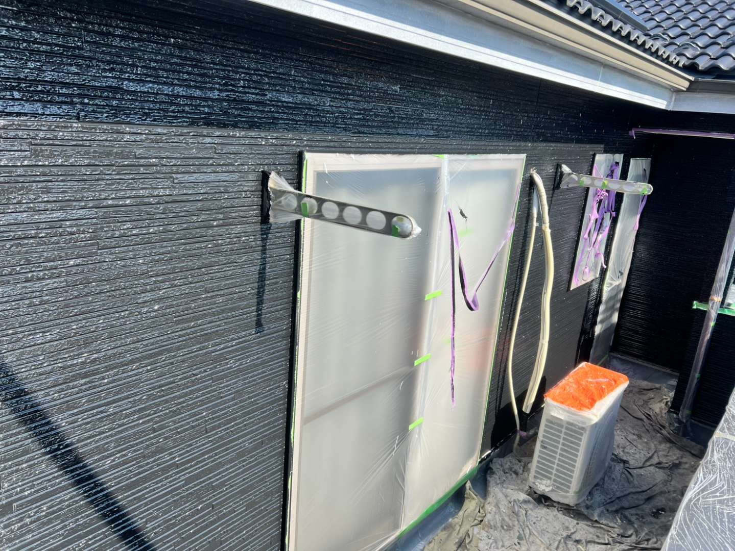 I様邸の昨日の作業内容は、外壁の上塗り塗装とコーキング打替え作業で既存のシートのカット・撤去作業を行いました。