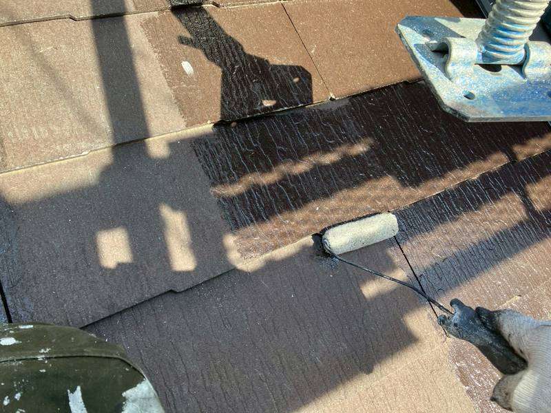 下屋根下塗り塗装作業