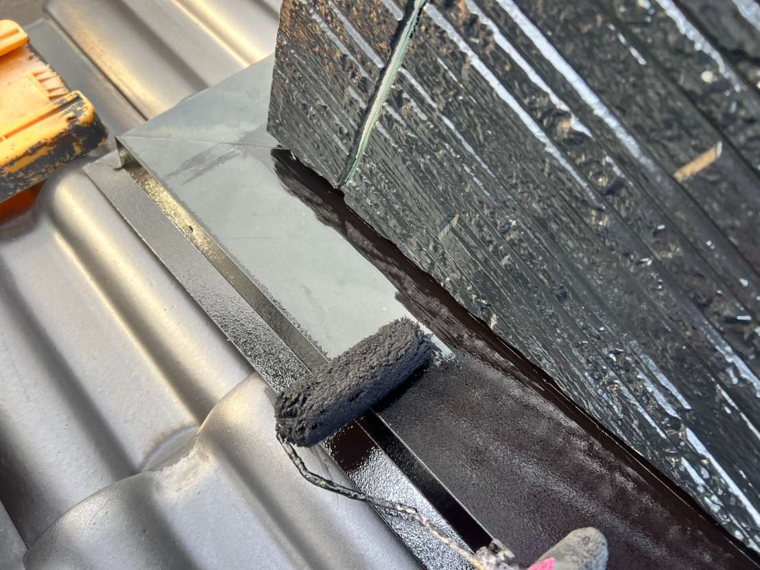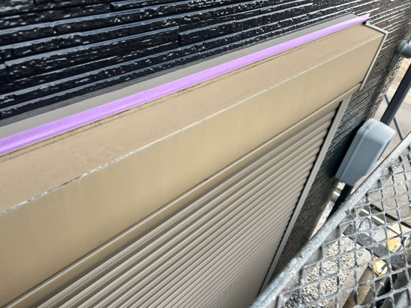 シャッターボックス・壁取り合い水切り下塗り(さび止め)塗装