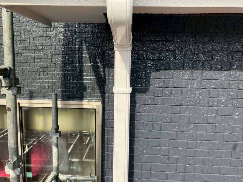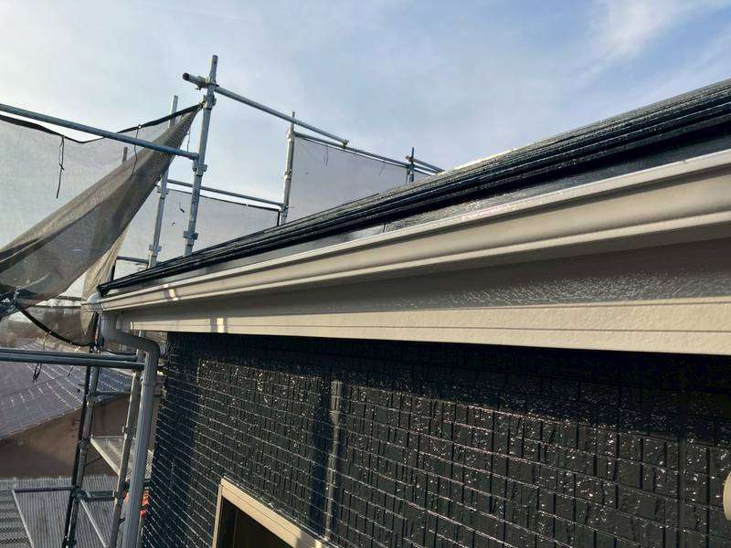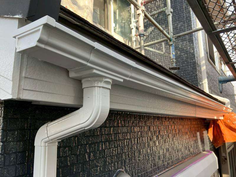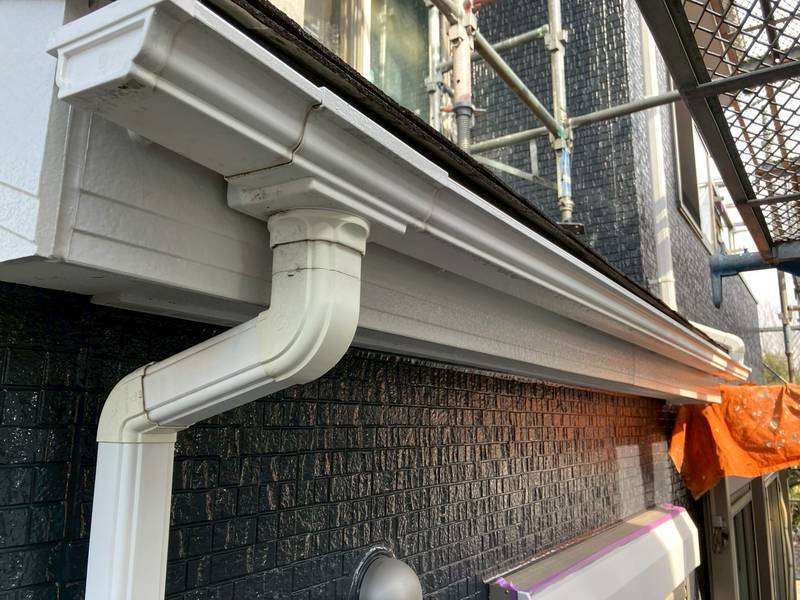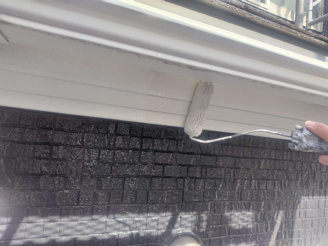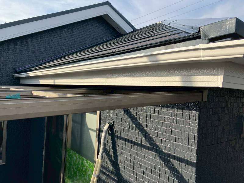 K様邸の昨日の作業内容は、付帯部塗装のシャッターボックスの下塗り、破風板・鼻隠し板の上塗り1回目・2回目塗装、雨樋の上塗り1回目・横樋は、上塗り2回目塗装まで完了しています。