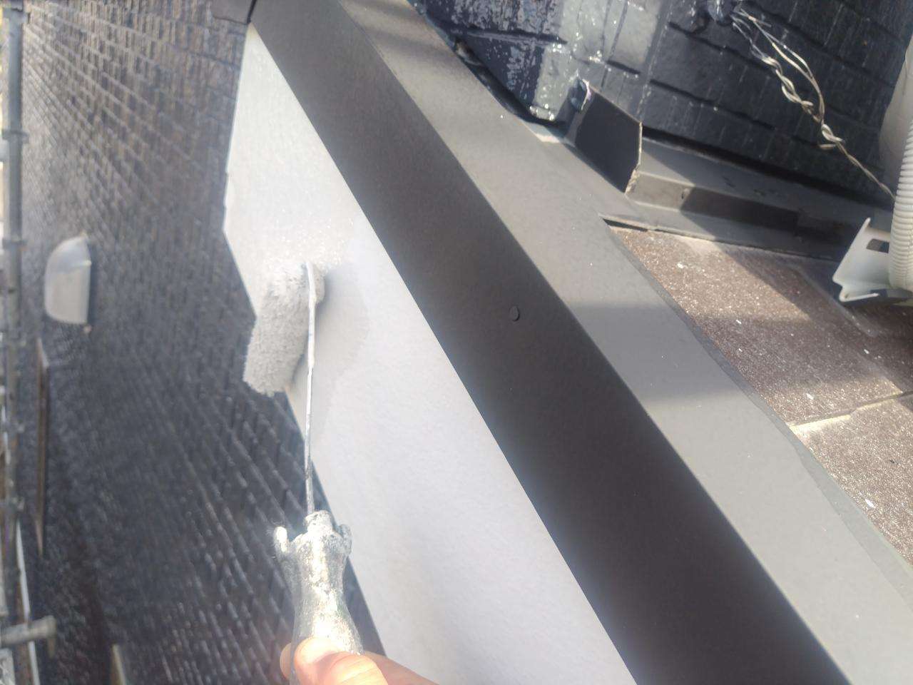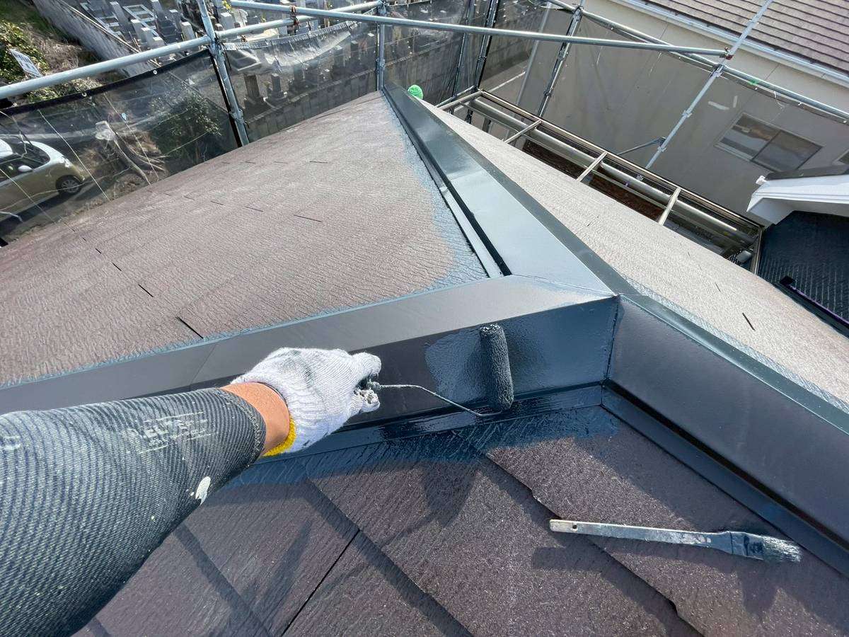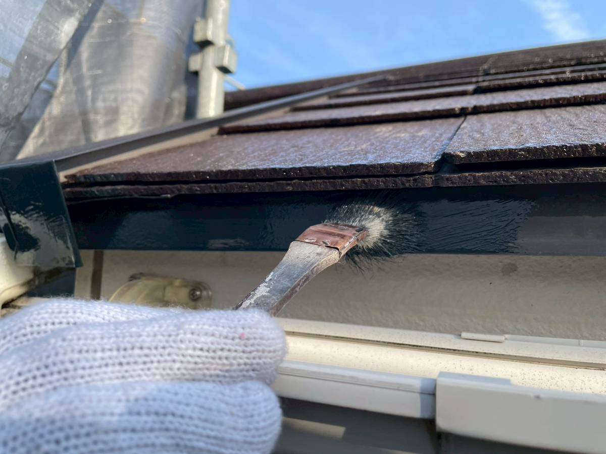 今日の作業は、引き続き付帯部塗装と屋根の上塗り塗装作業を予定しています。