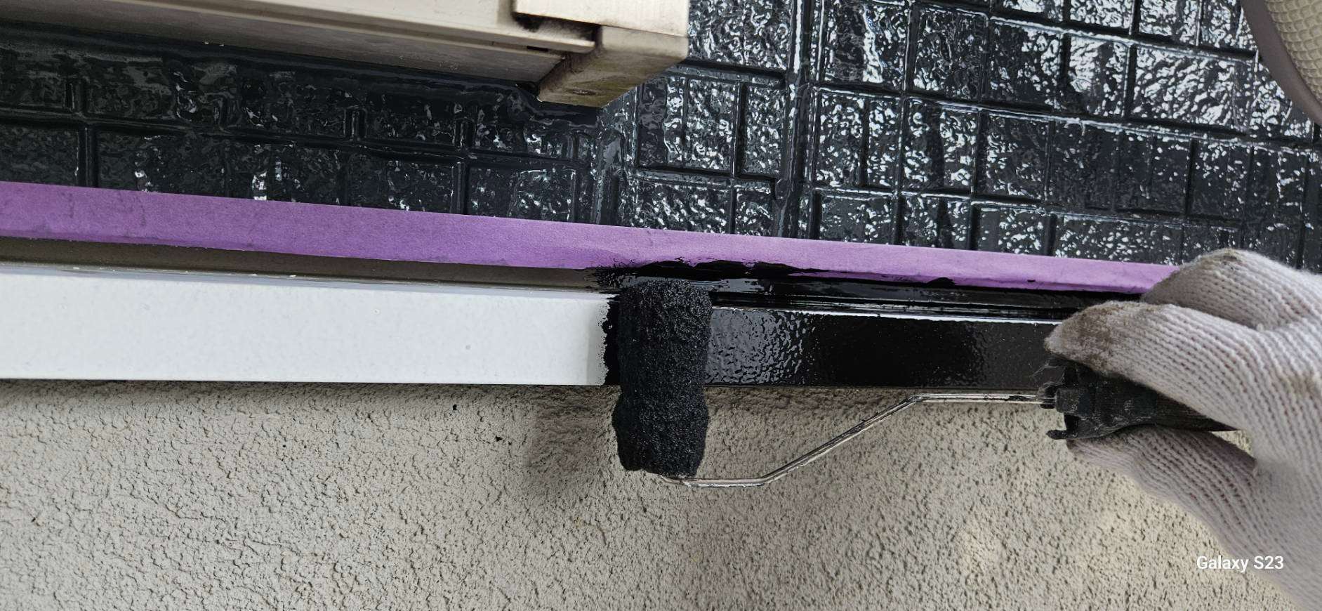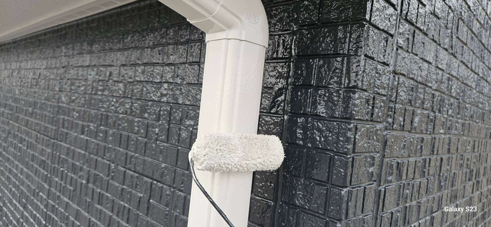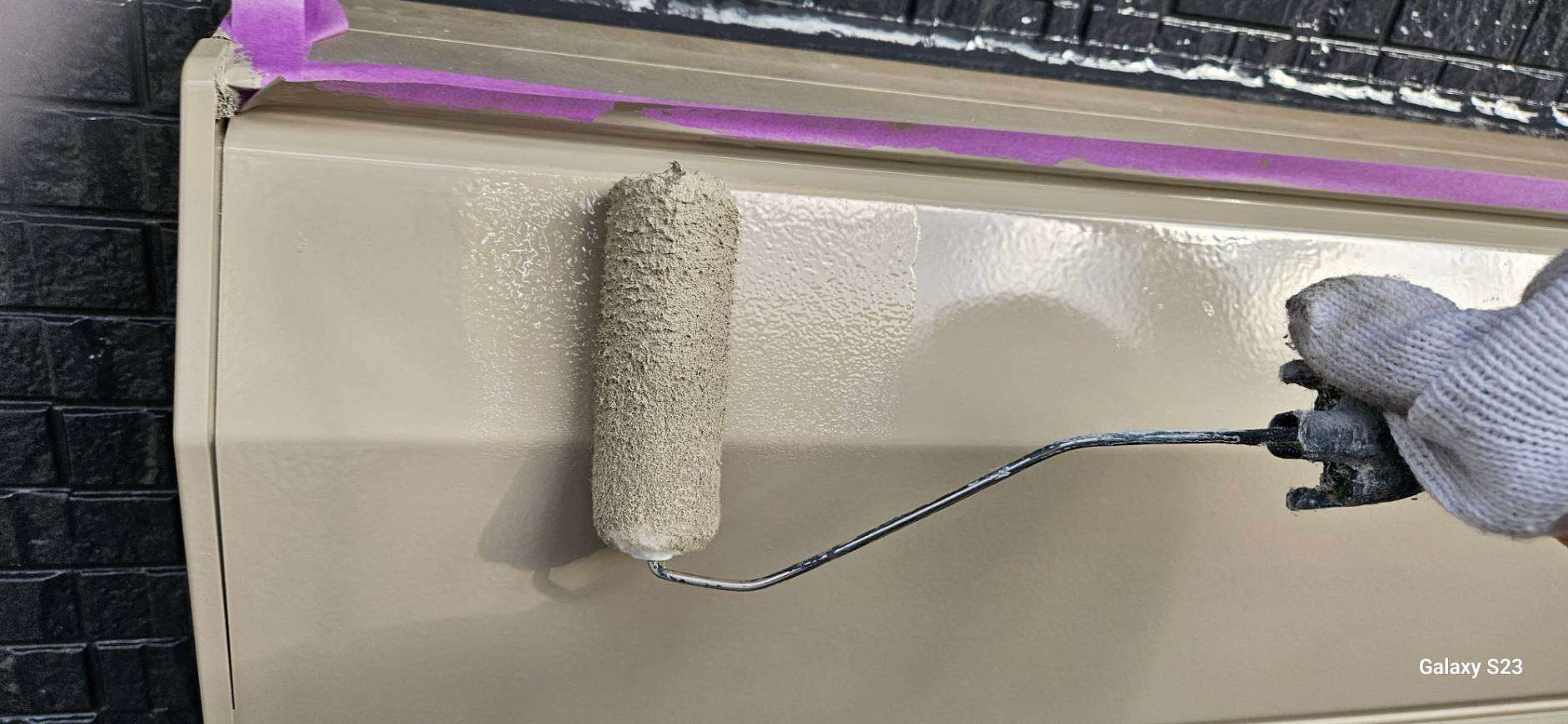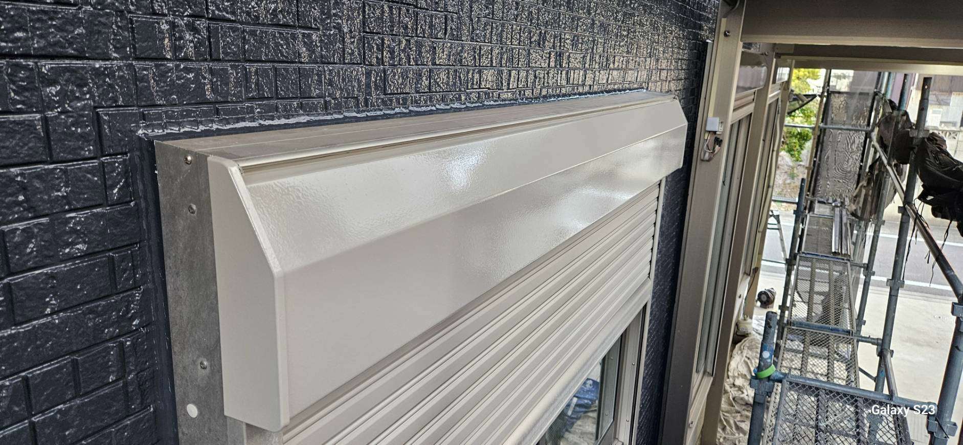 清須市のK様邸の昨日の作業内容は、付帯部(水切り・シャッターボックス・縦樋)塗装作業と下屋根・大屋根の塗装作業を行っています。
