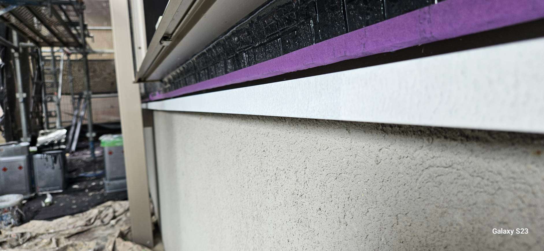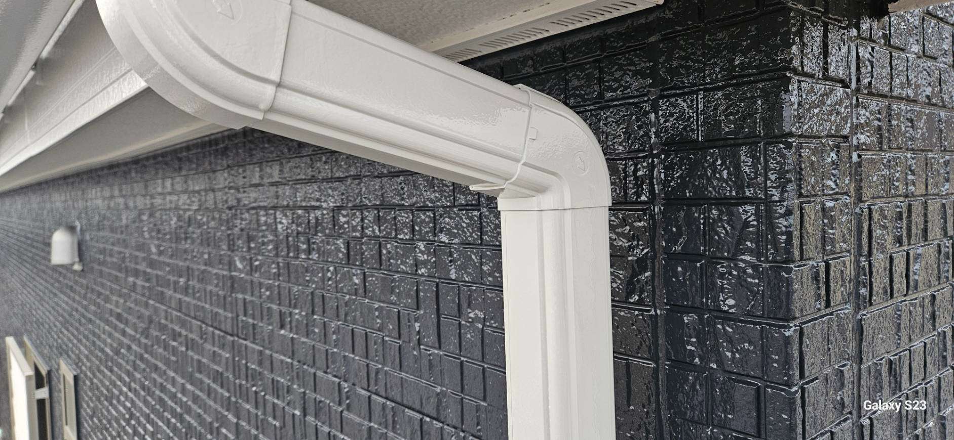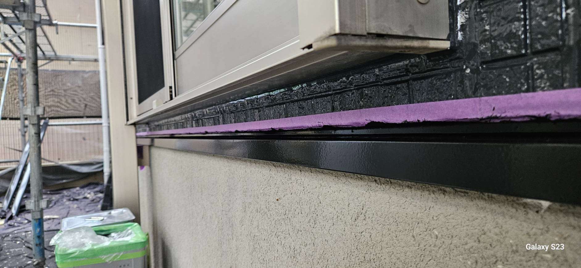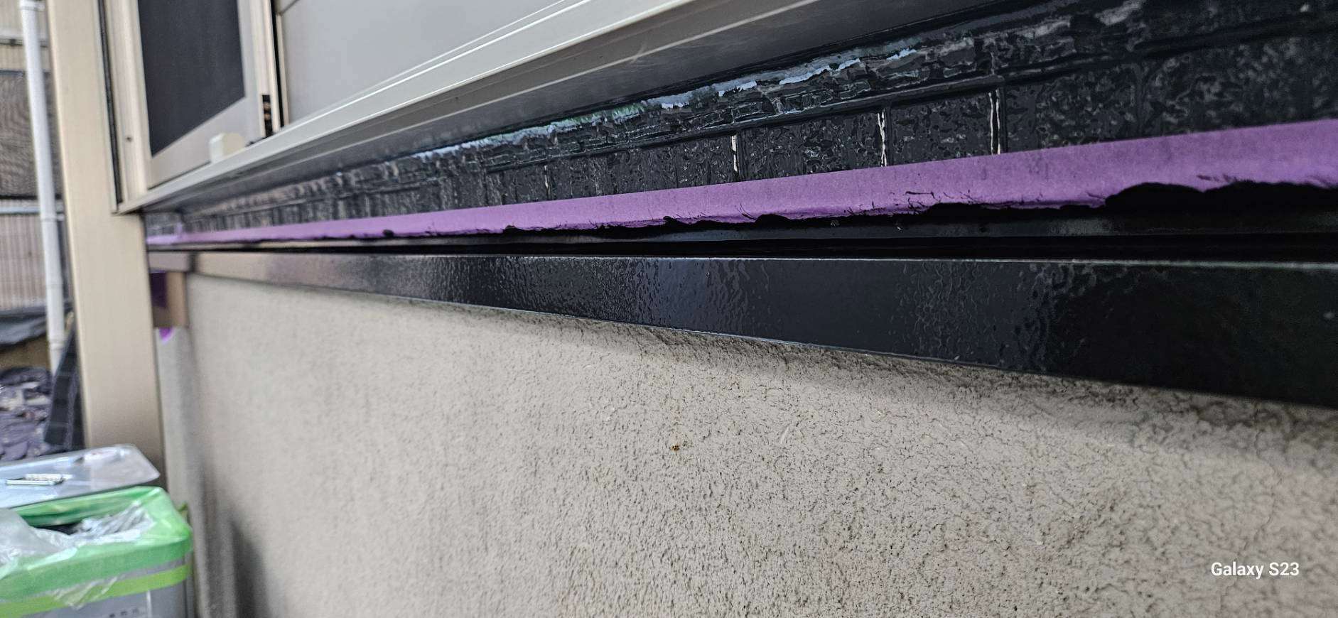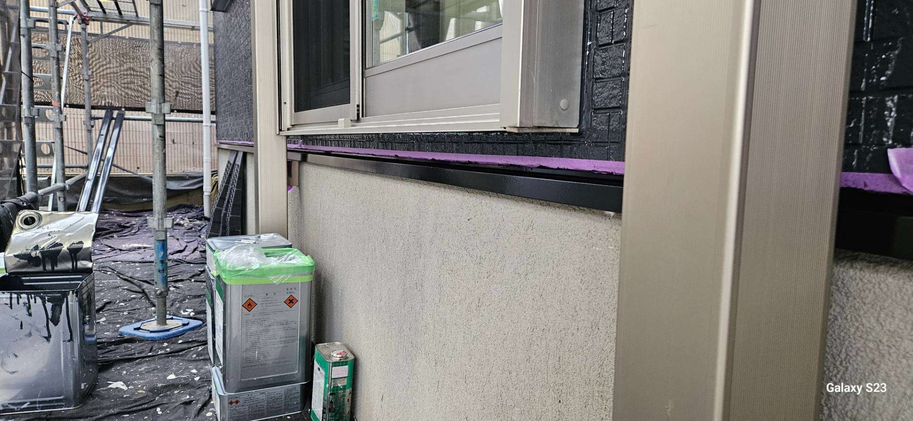 清須市のK様邸の昨日の作業内容は、付帯部(水切り・シャッターボックス・縦樋)塗装作業と下屋根・大屋根の塗装作業を行っています。