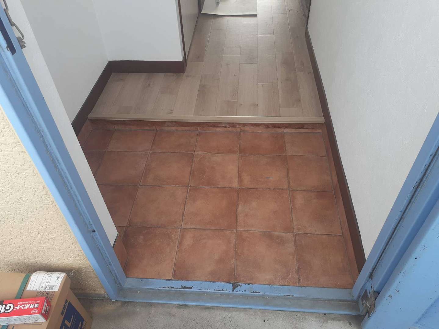 多治見市のFマンション様の昨日の作業は、トイレ・洗面室のフロアタイル貼り作業と玄関のフロアタイル貼り作業を行っています。