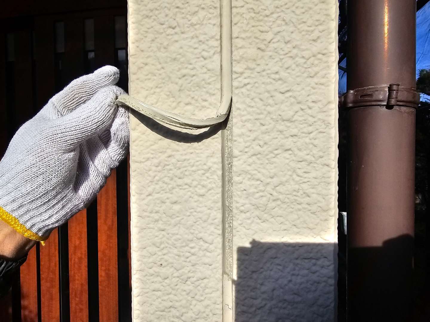 春日井市N様邸の昨日の作業内容は、外壁目地部の打替え・増し打ち作業を行っています。