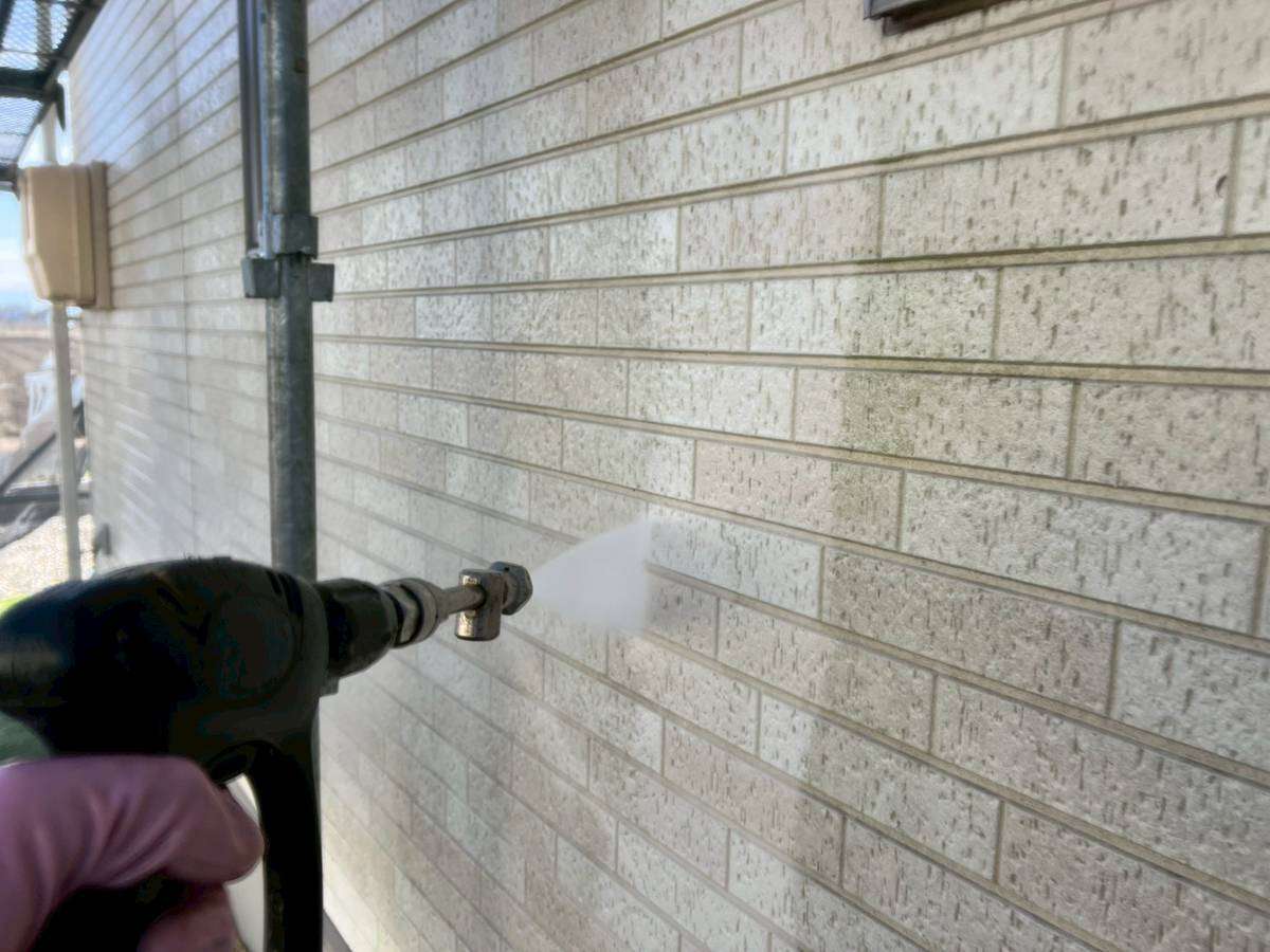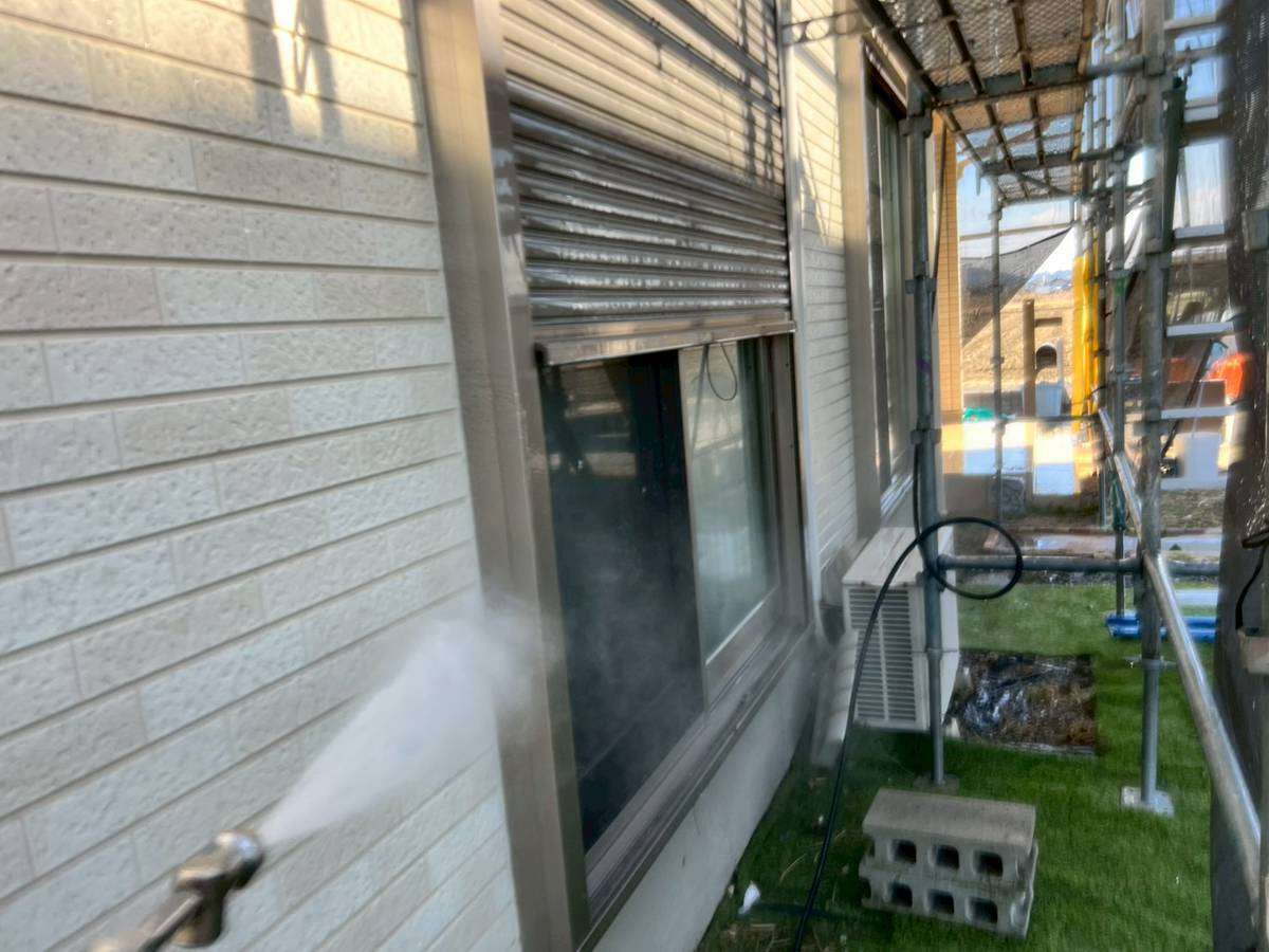 本巣市K様邸の昨日の作業内容は、外壁の高圧洗浄作業を行っています。