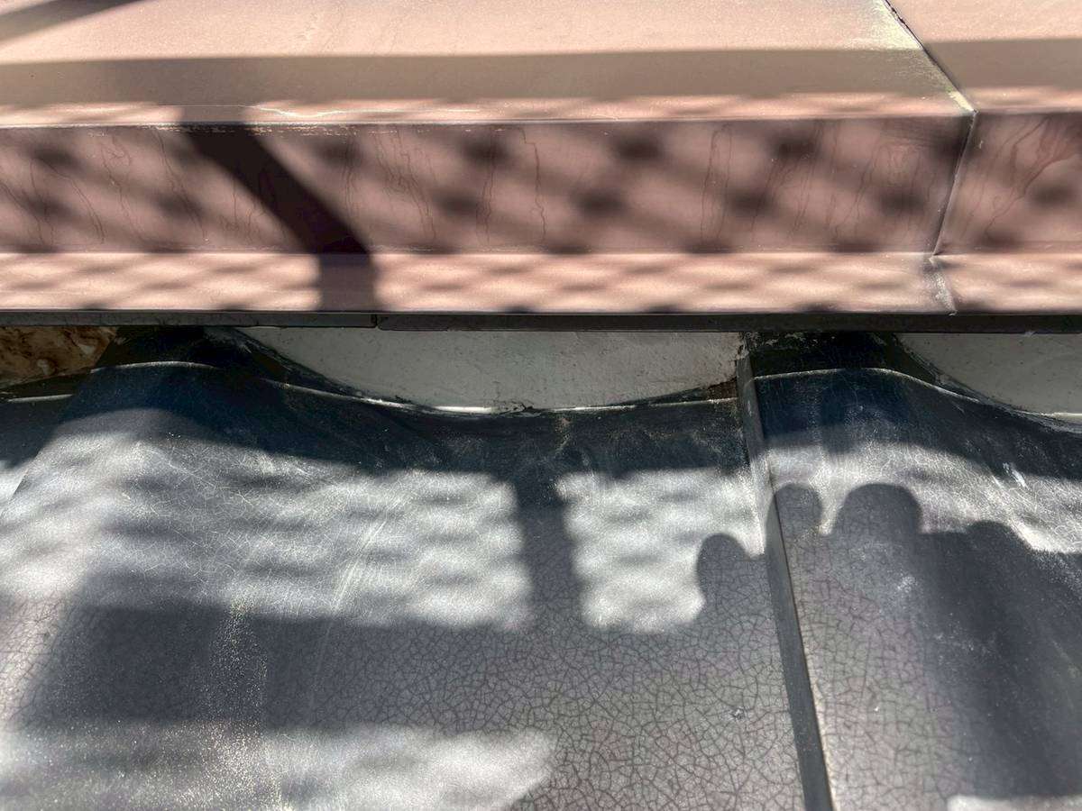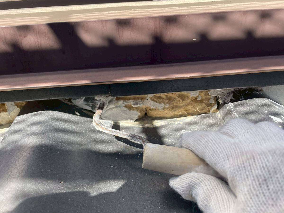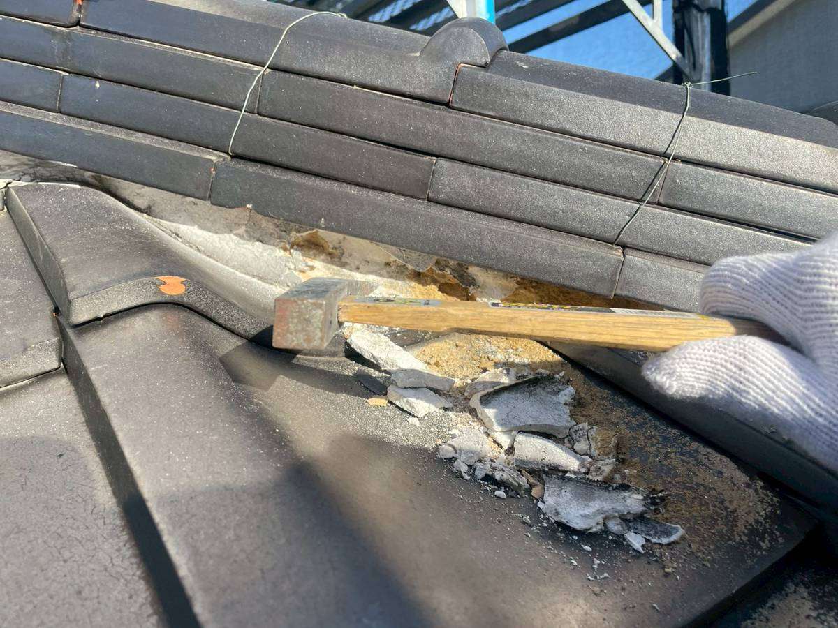 春日井市N様邸の昨日の作業内容は、屋根漆喰工事の下屋根部分の漆喰詰め直し作業を行っています。