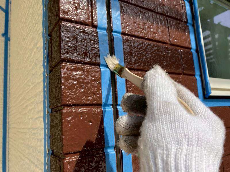 岐阜市M様邸の昨日の作業内容は、外壁目地コーキング(シーリング)打替え・増し打ち工事のシーリング材充填作業を行っています。