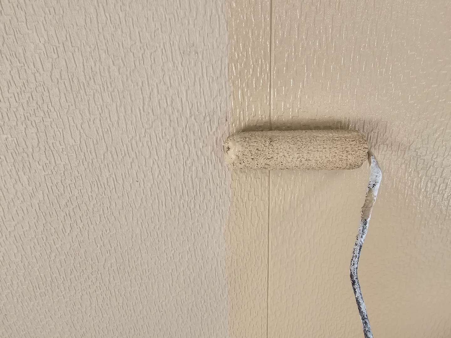 外壁の中塗り塗装作業