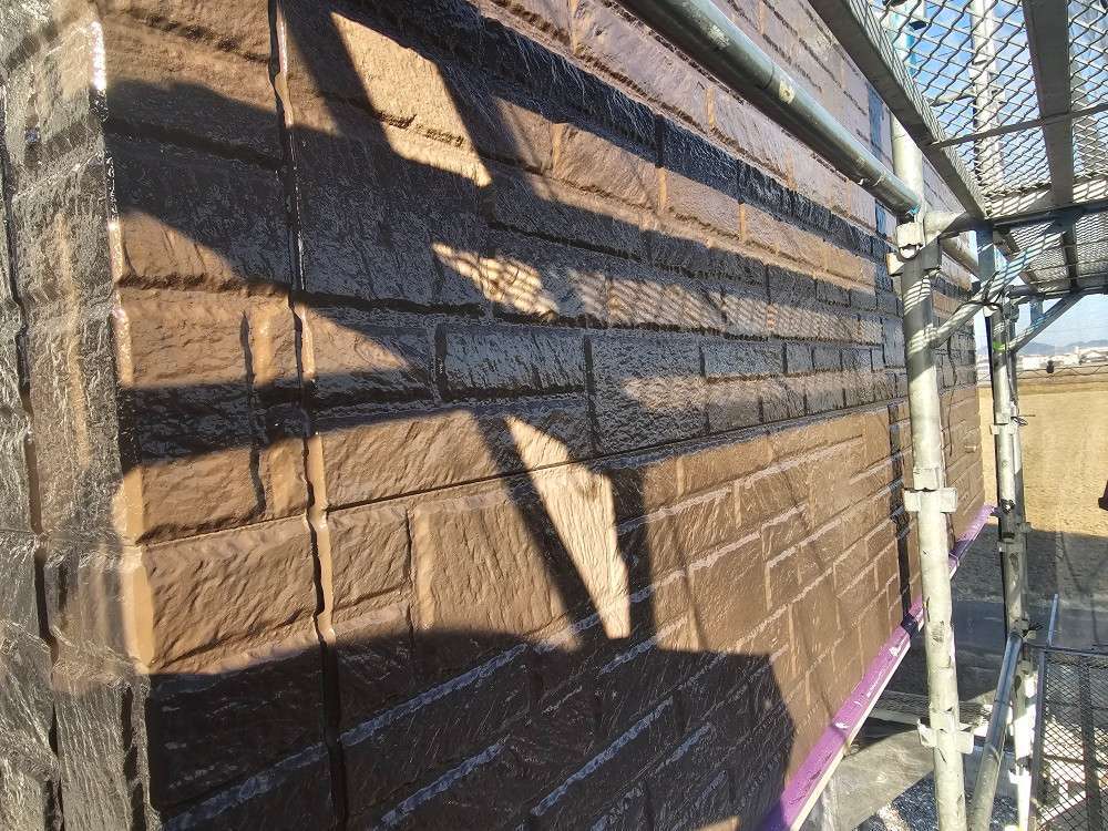 本巣市のK様邸の昨日の作業内容は、軒天部の上塗り1回目・2回目塗装と外壁の中塗り塗装作業を行っています。