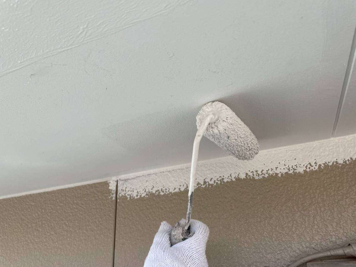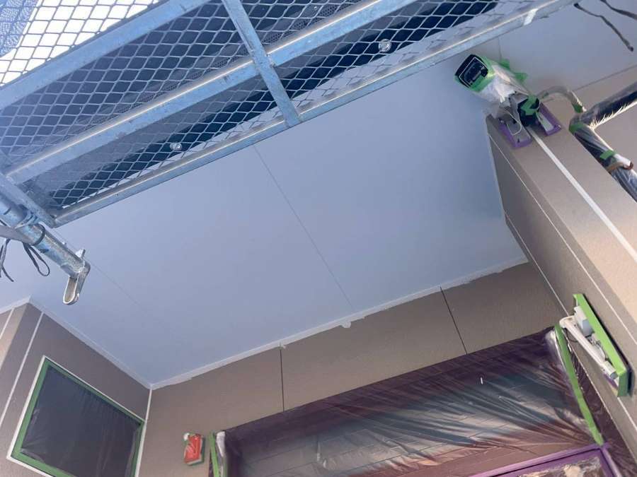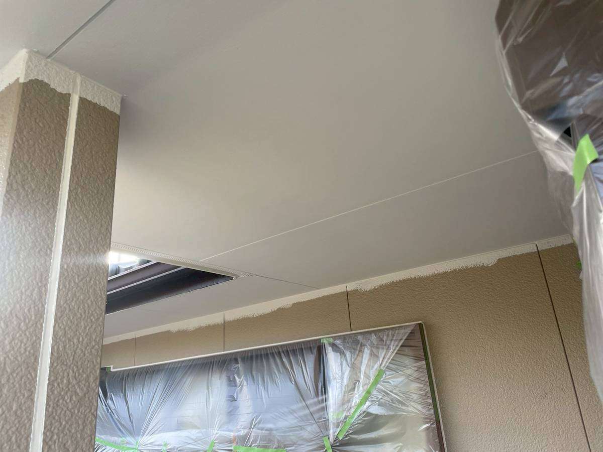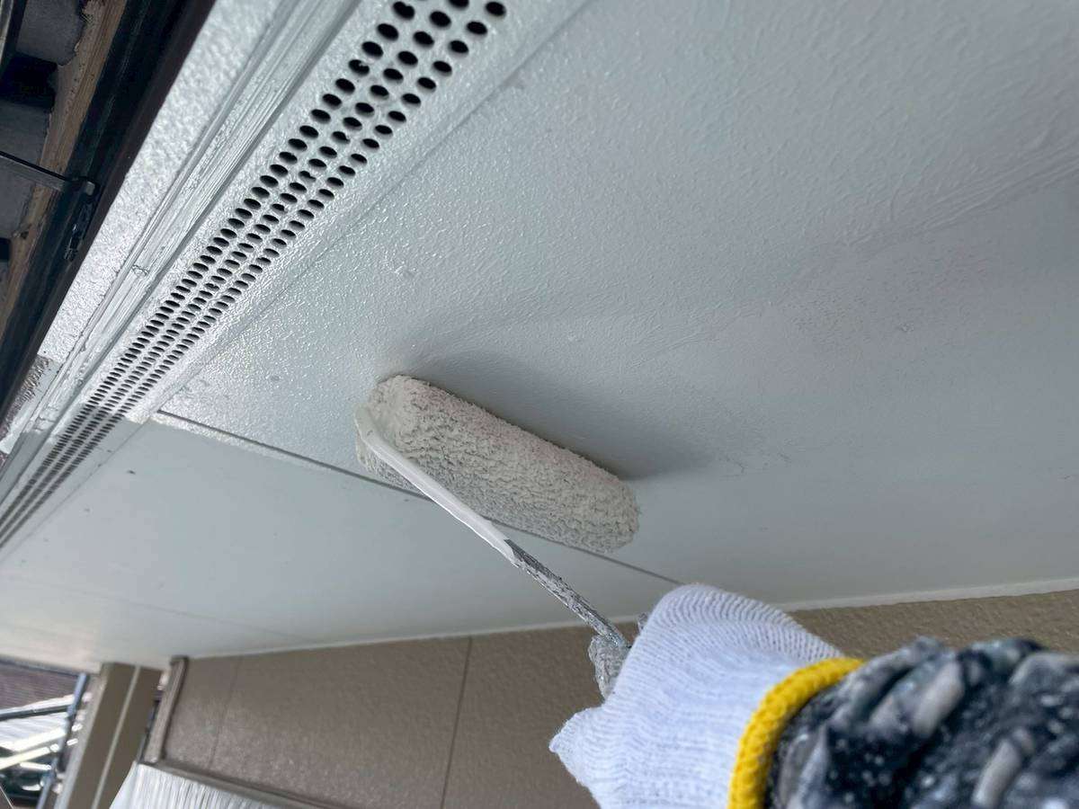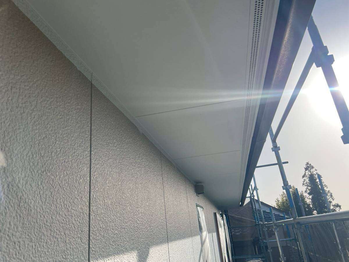 春日井市のN様邸の今日の作業は、軒天部2回目塗装と外壁の下塗り塗装作業を予定しています。