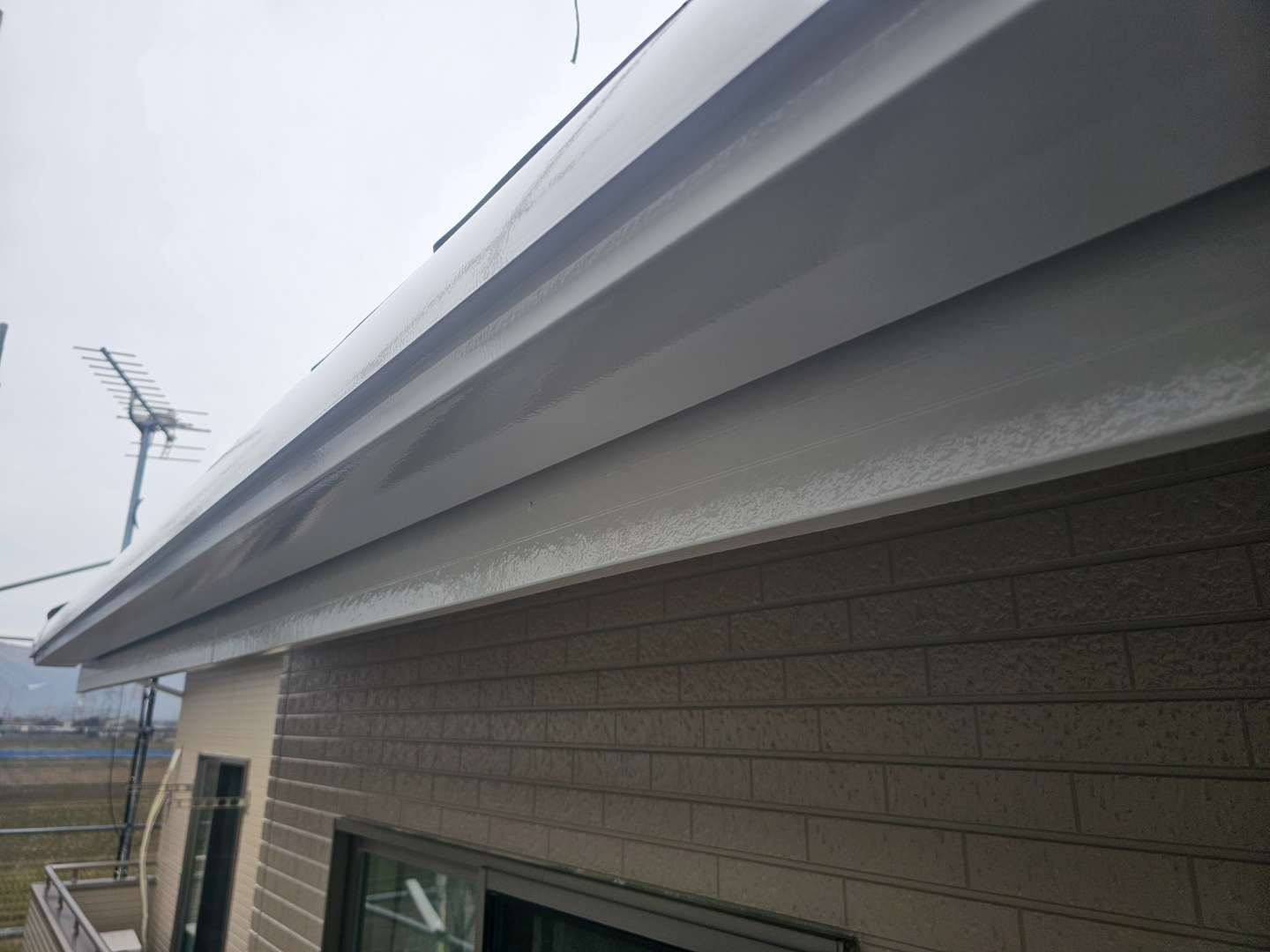 本巣市のK様邸の昨日の作業内容は、付帯部(破風板・鼻隠し板・雨樋壁取り合い水切り・土台水切り・シャッターボックス)の上塗り2回目塗装作業とコーキング(シーリング)打替え・増し打ち工事の既存シーリング材の撤去作業を行っています。