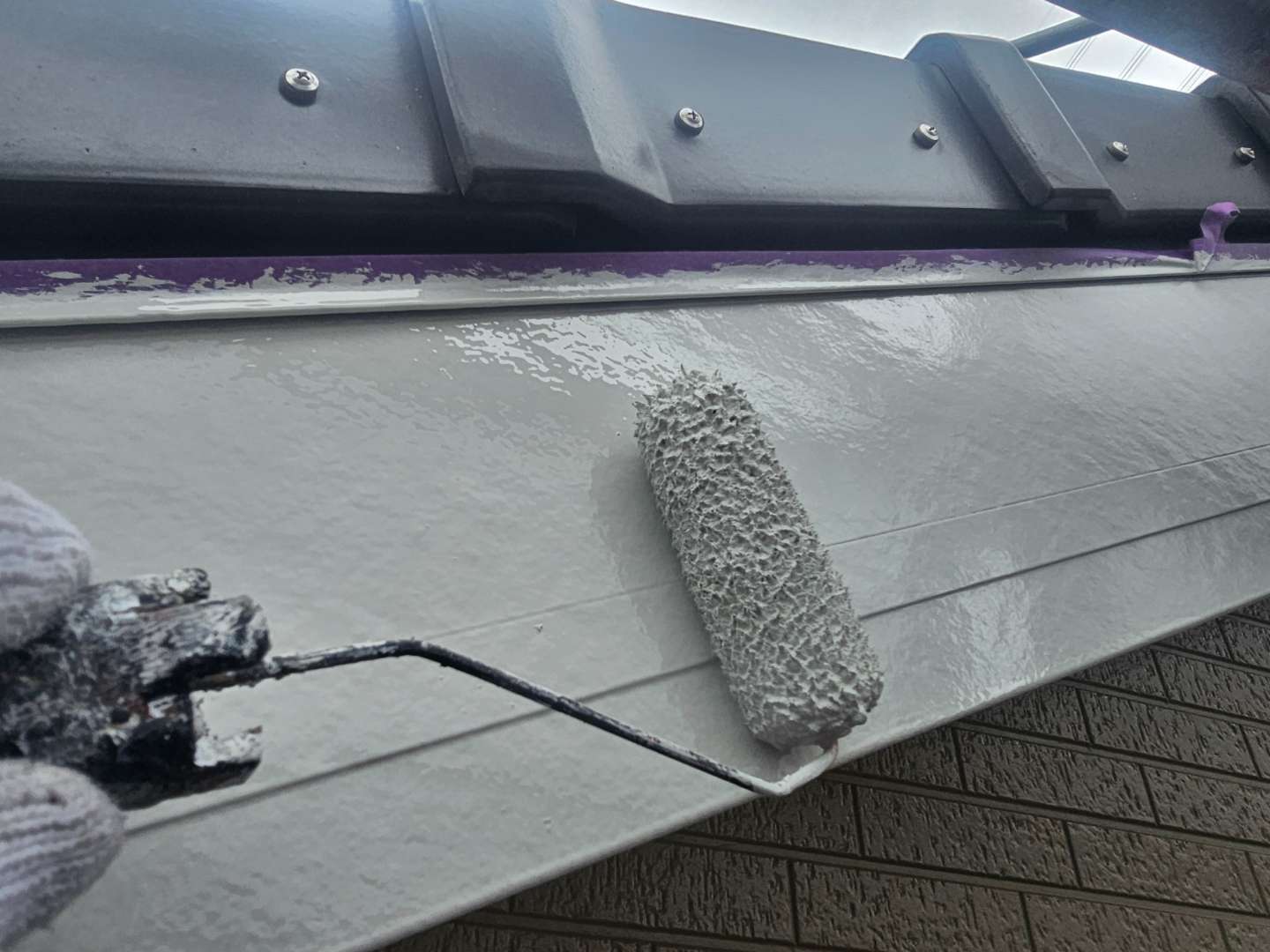付帯部上塗り2回目塗装作業