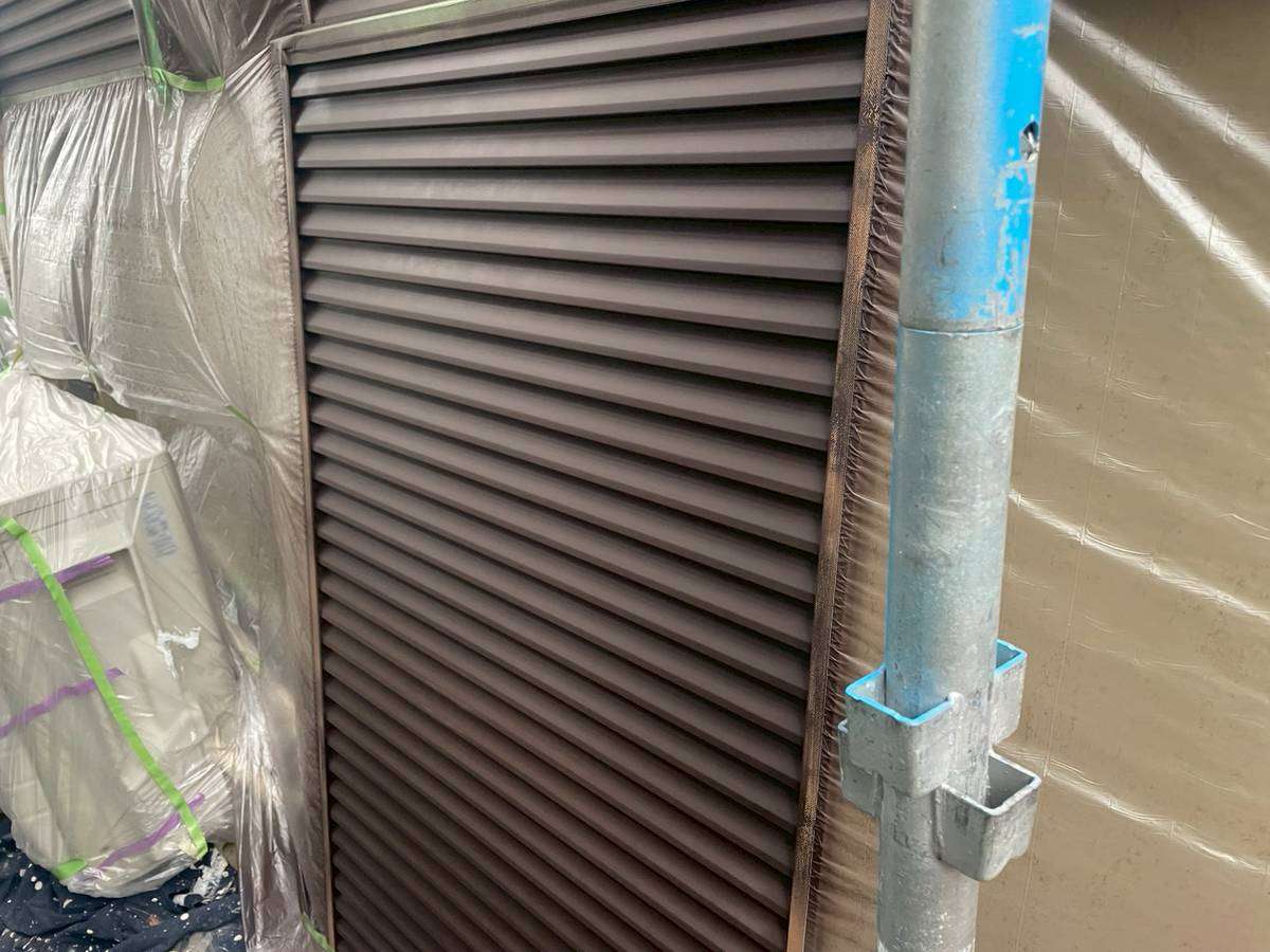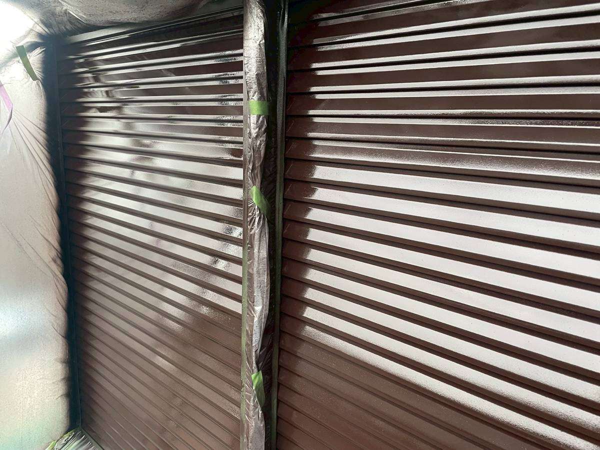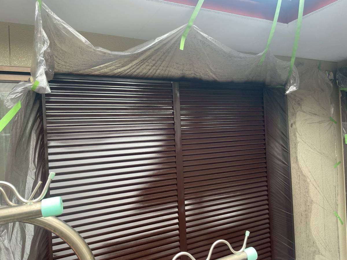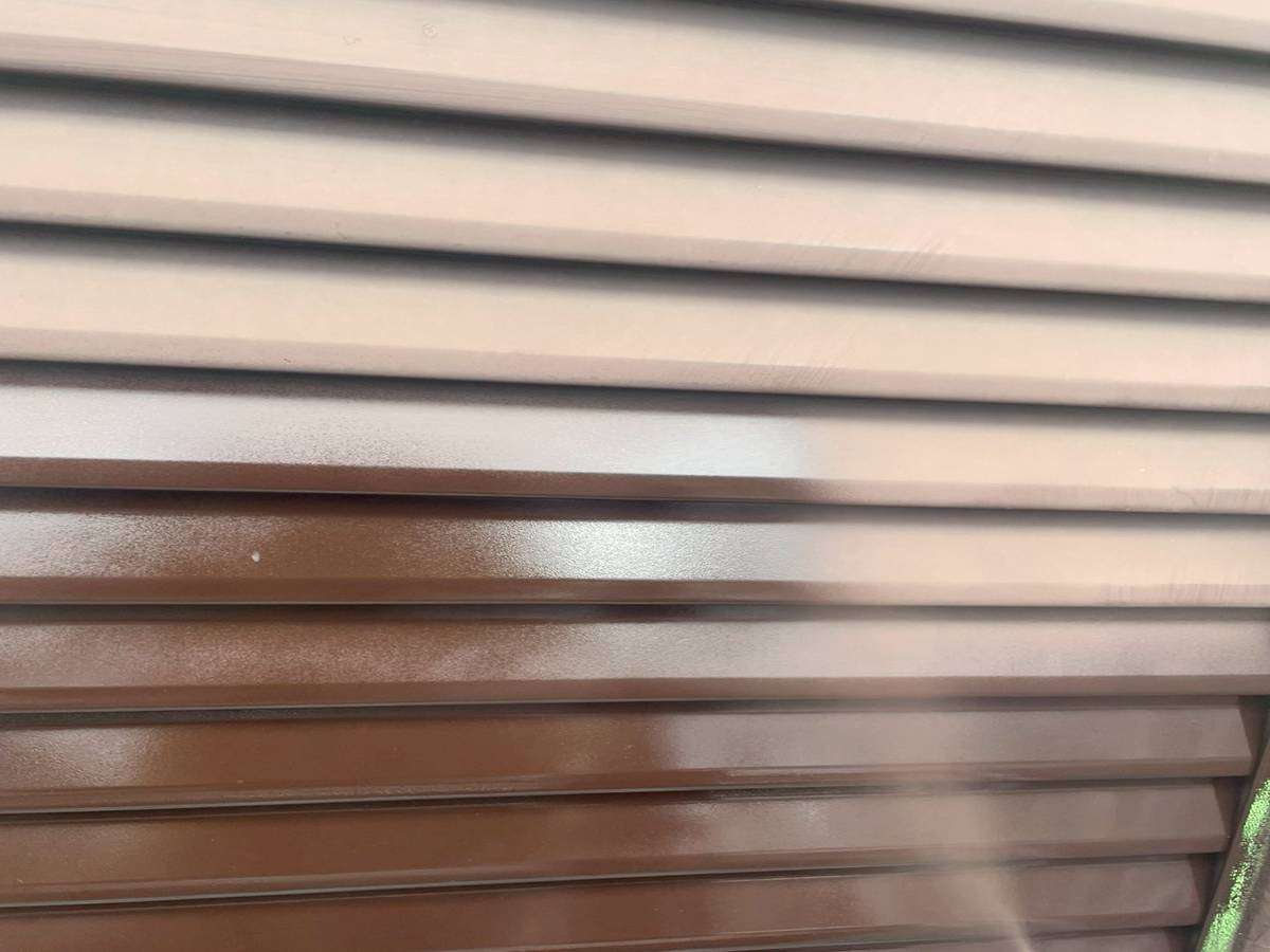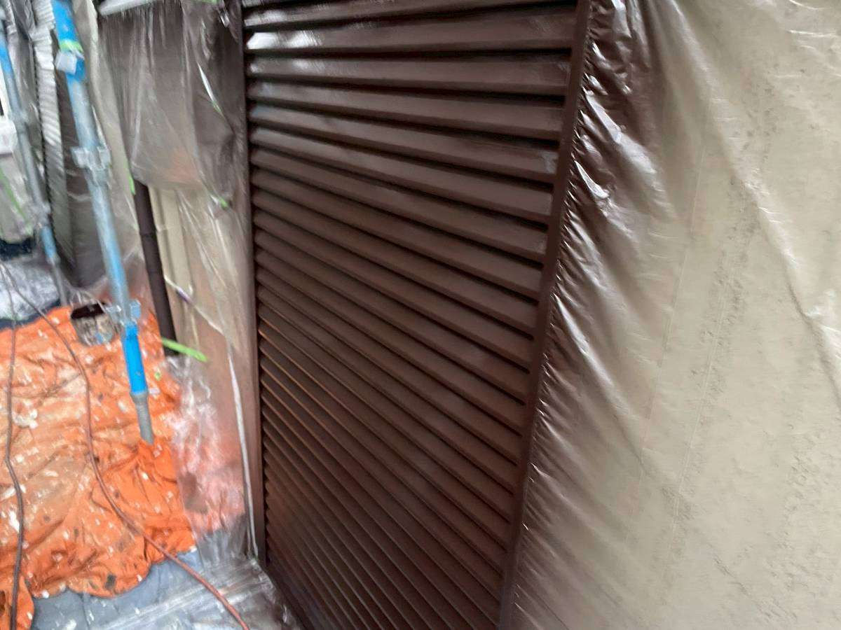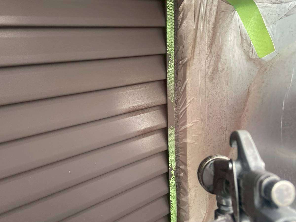 春日井市のN様邸の昨日までの作業内容は、外壁の上塗り塗装作業、水切りの下塗り(サビ止め)作業、雨戸のケレン・サビ止め・上塗り2回塗り作業を行っていました。