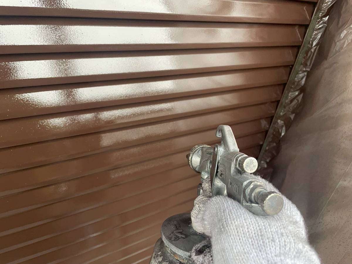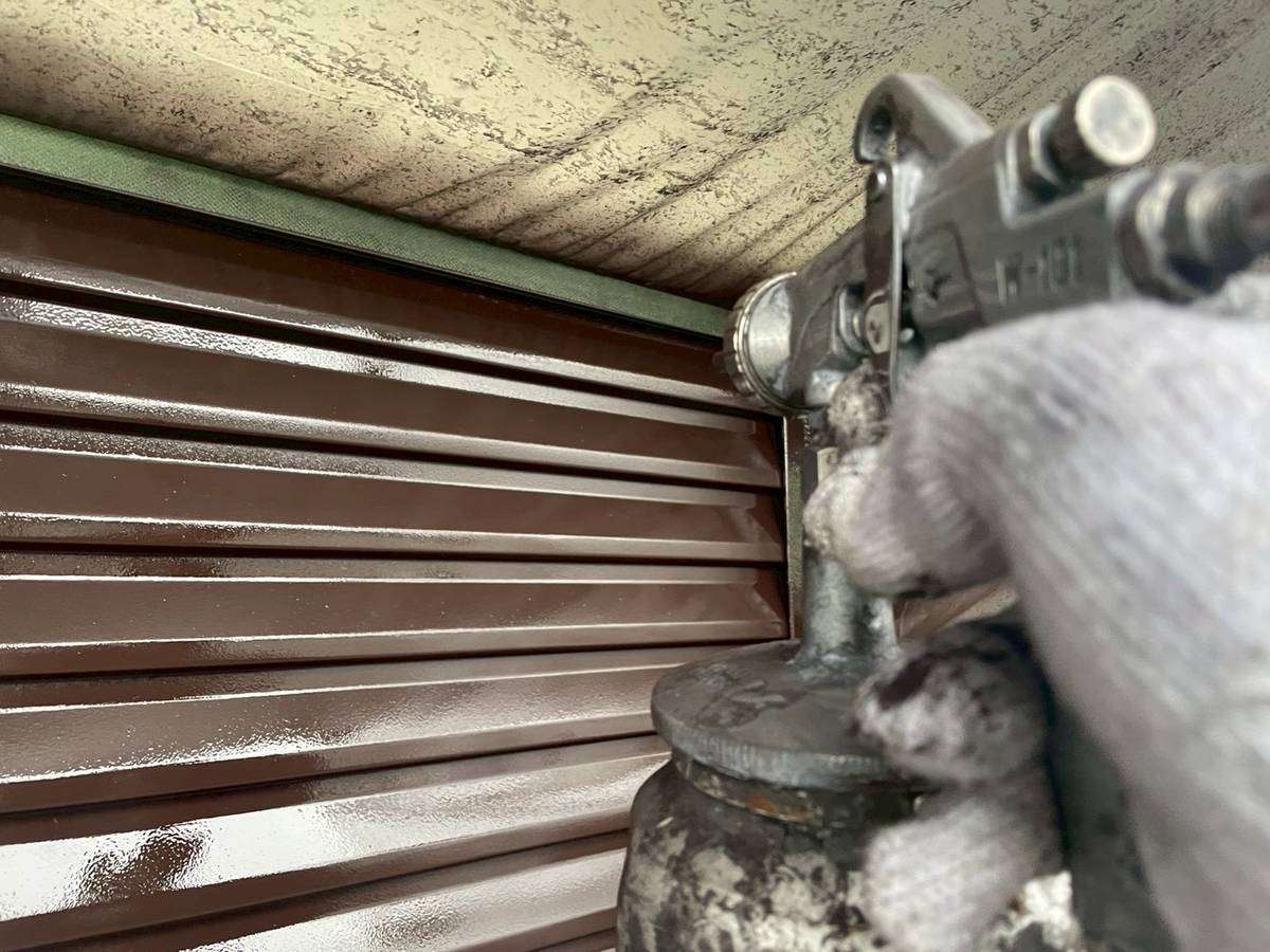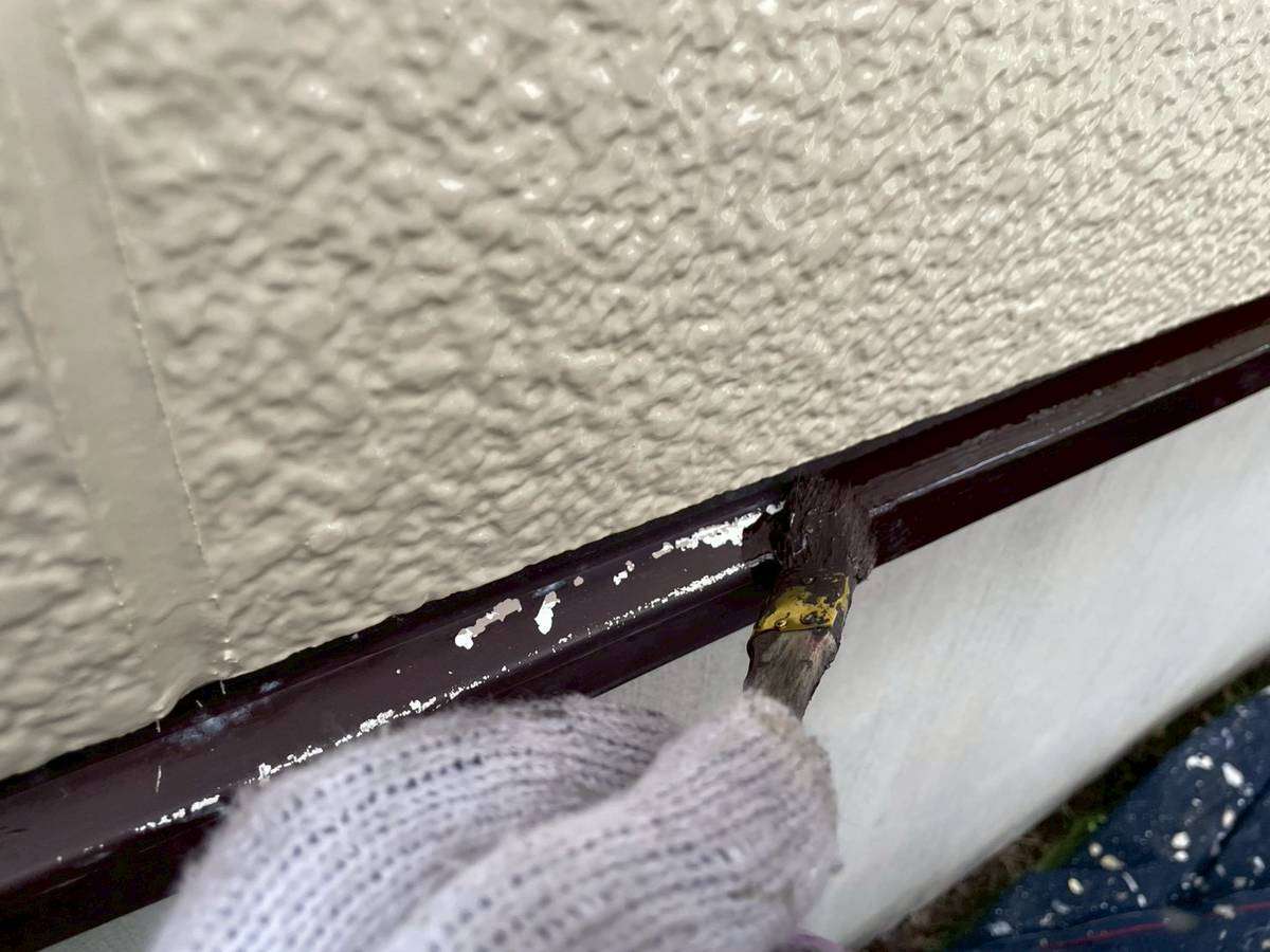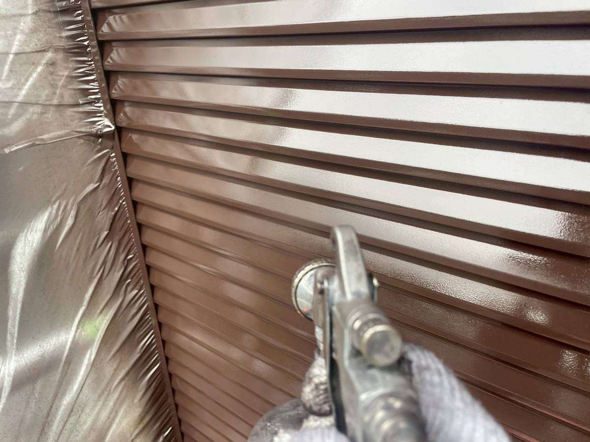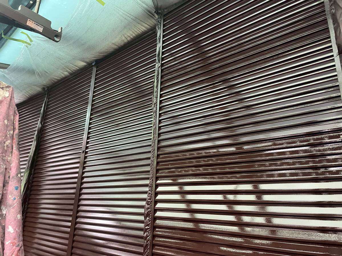 春日井市のN様邸の昨日までの作業内容は、外壁の上塗り塗装作業、水切りの下塗り(サビ止め)作業、雨戸のケレン・サビ止め・上塗り2回塗り作業を行っていました。