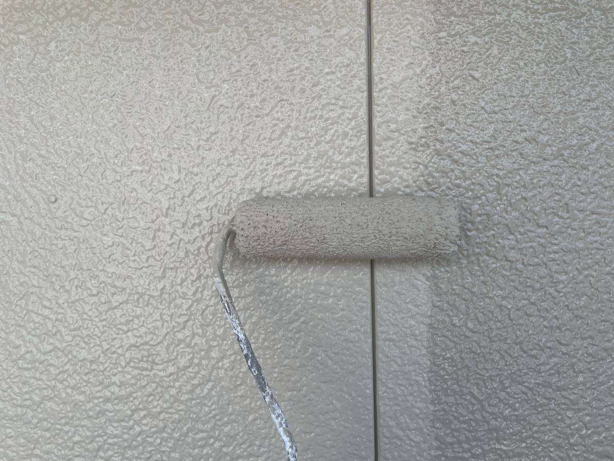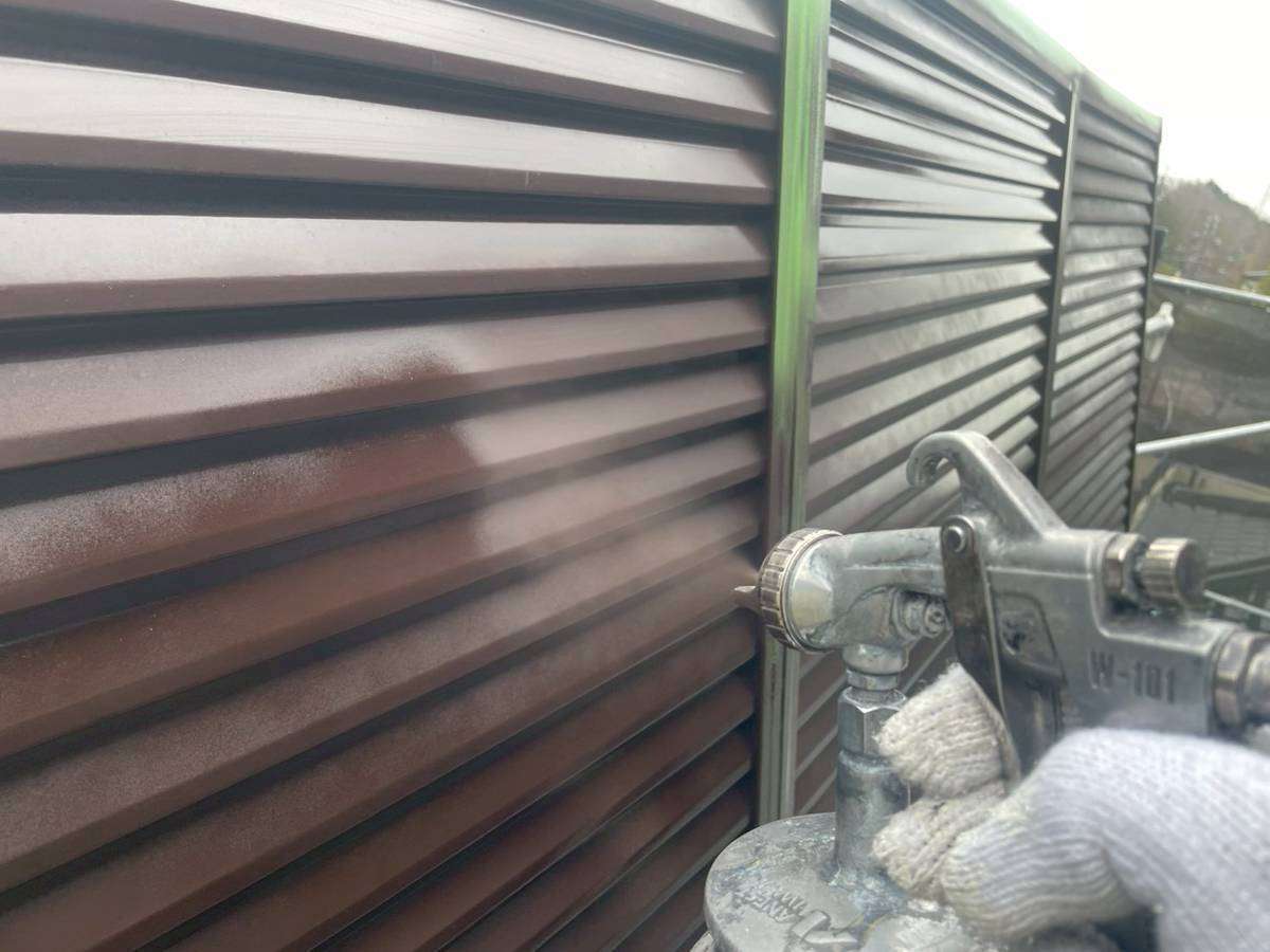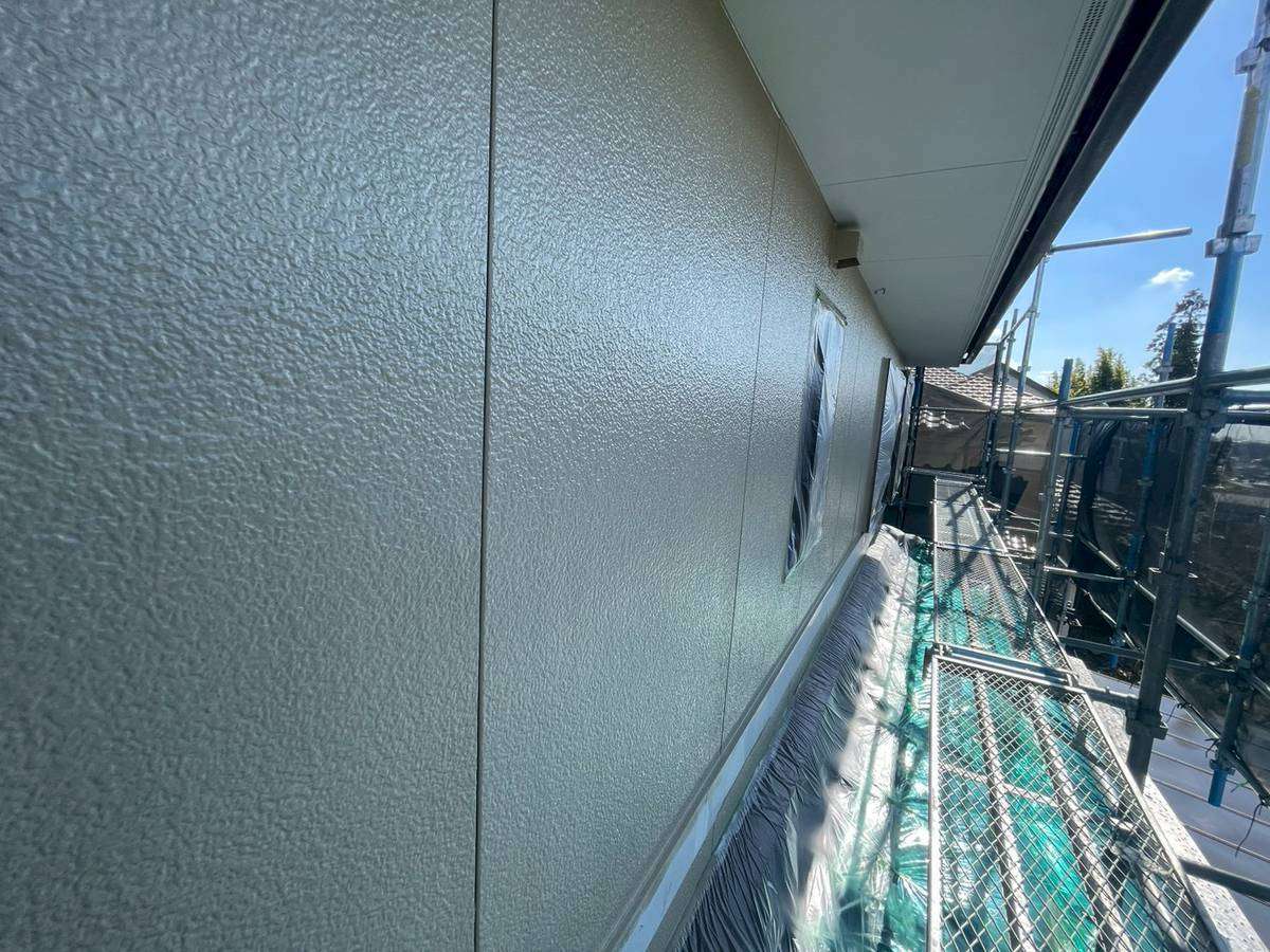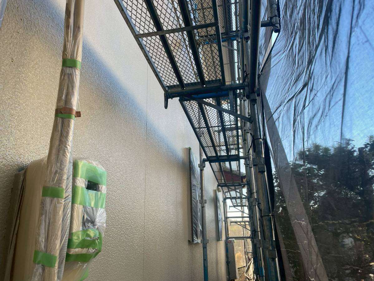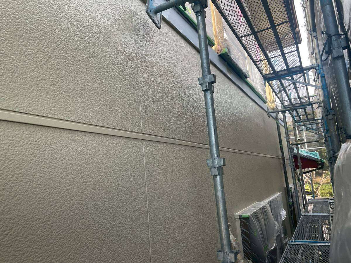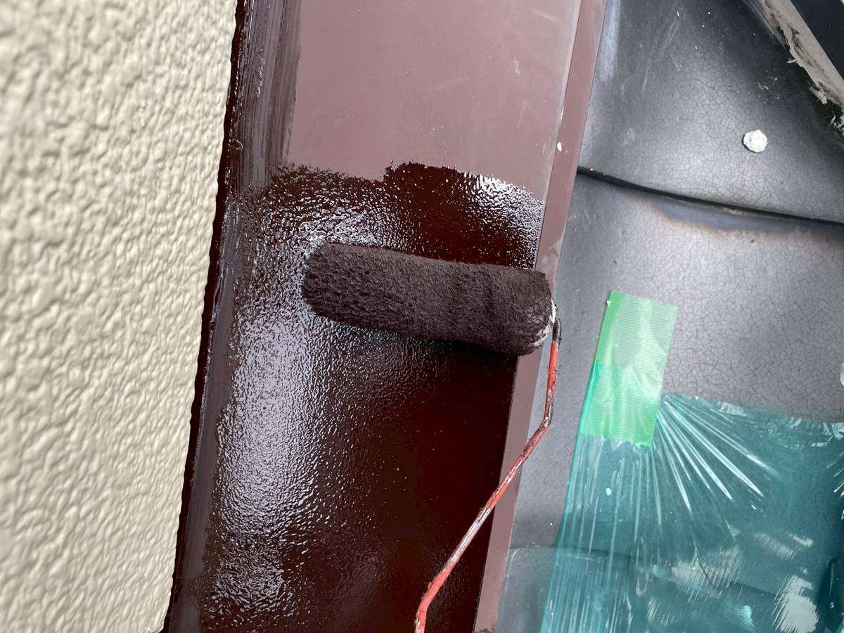 春日井市のN様邸の昨日までの作業内容は、外壁の上塗り塗装作業、水切りの下塗り(サビ止め)作業、雨戸のケレン・サビ止め・上塗り2回塗り作業を行っていました。