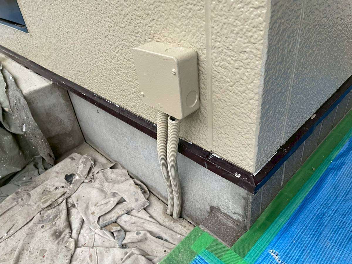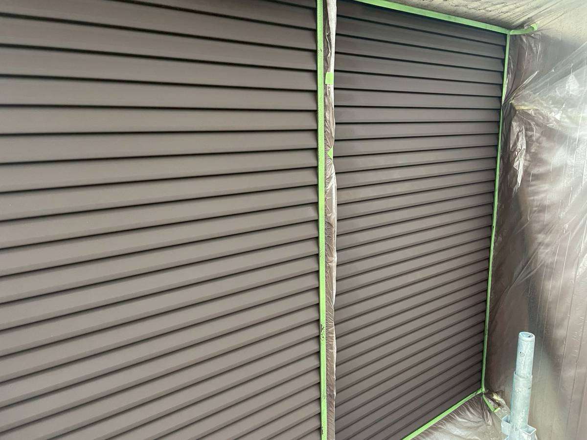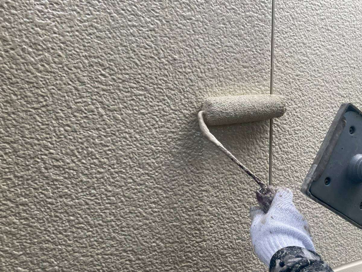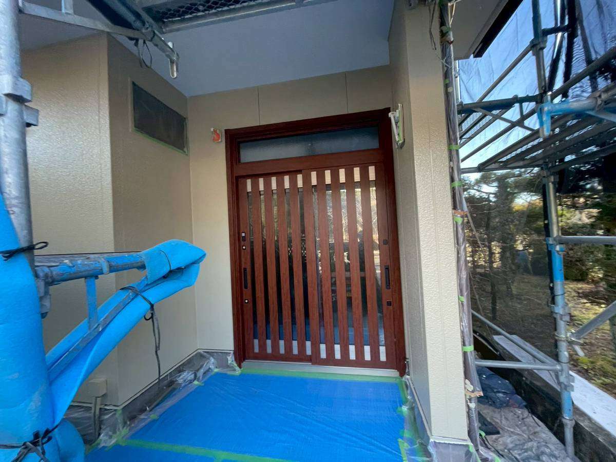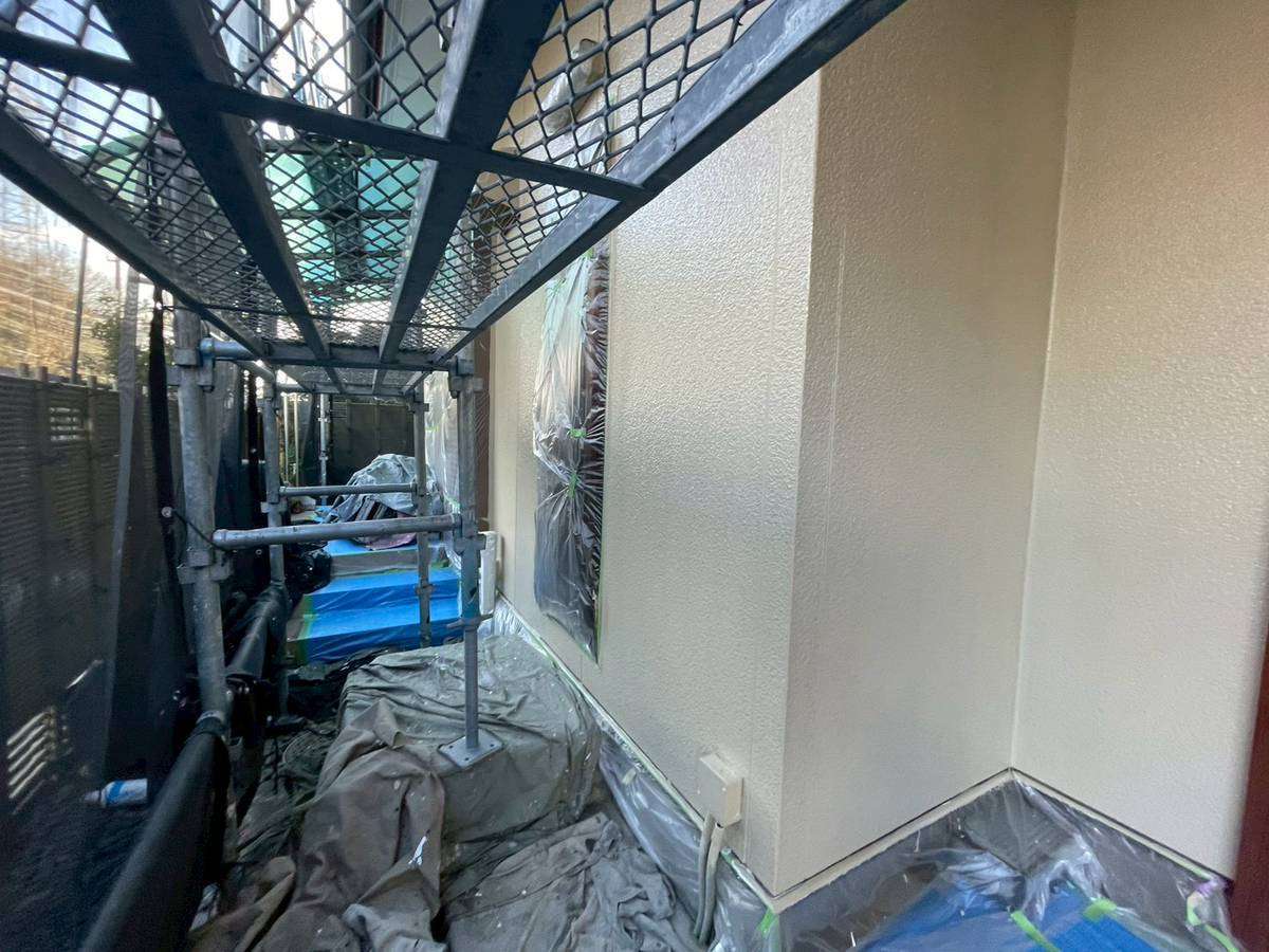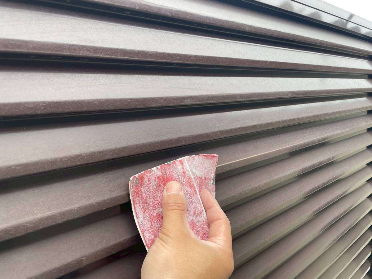 春日井市のN様邸の昨日までの作業内容は、外壁の上塗り塗装作業、水切りの下塗り(サビ止め)作業、雨戸のケレン・サビ止め・上塗り2回塗り作業を行っていました。