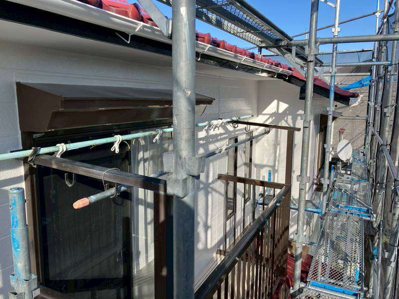 これで、塗装作業は全て完了しました。残る作業は、仮設足場の解体です。