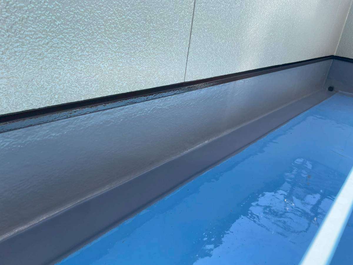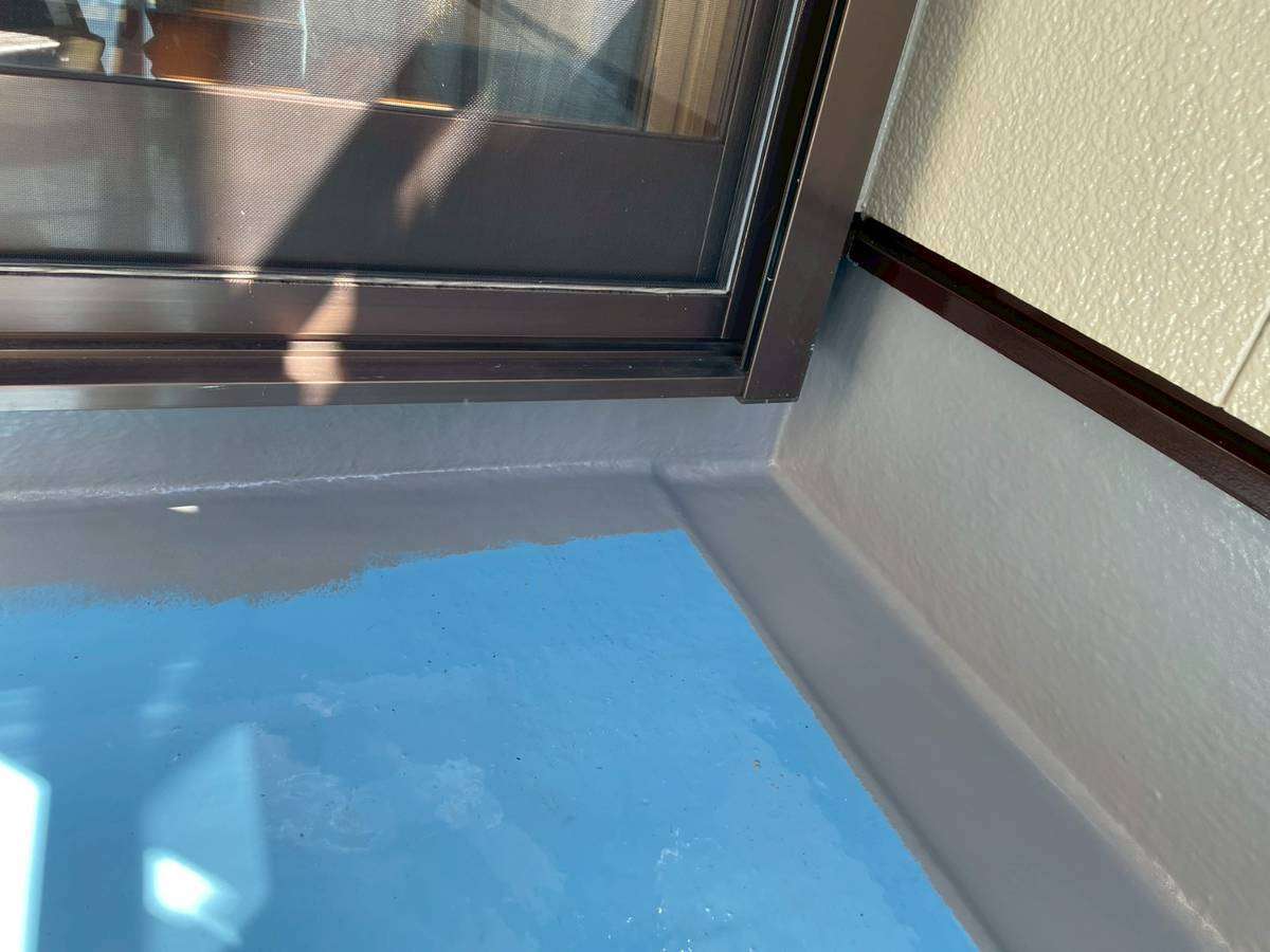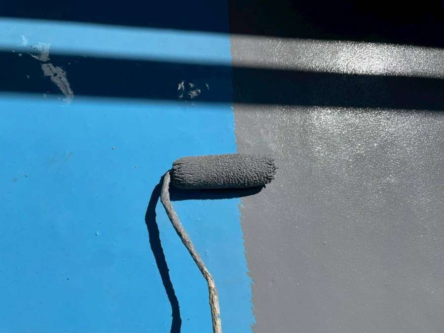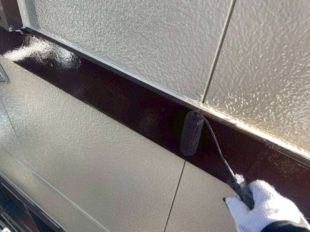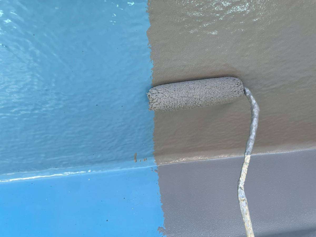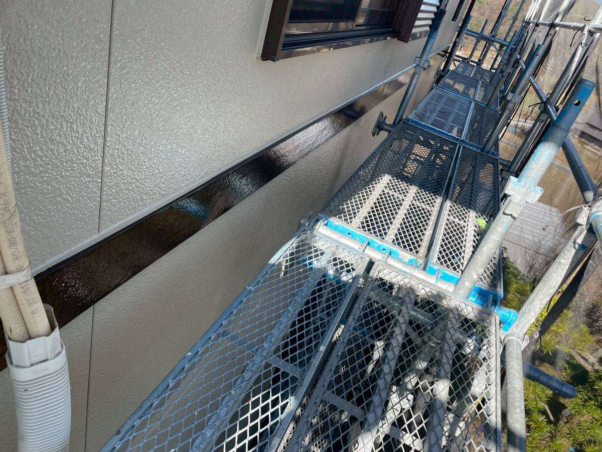 N様邸の昨日の作業内容は、付帯部塗装の破風板・鼻隠し板・雨樋(軒樋・縦樋)・帯板・壁取り合い水切りの上塗り2回目塗装作業とベランダ防水のトップコート塗装作業を行っていました。