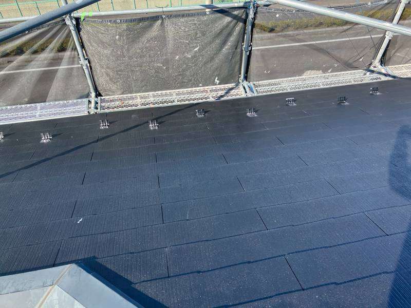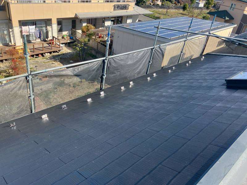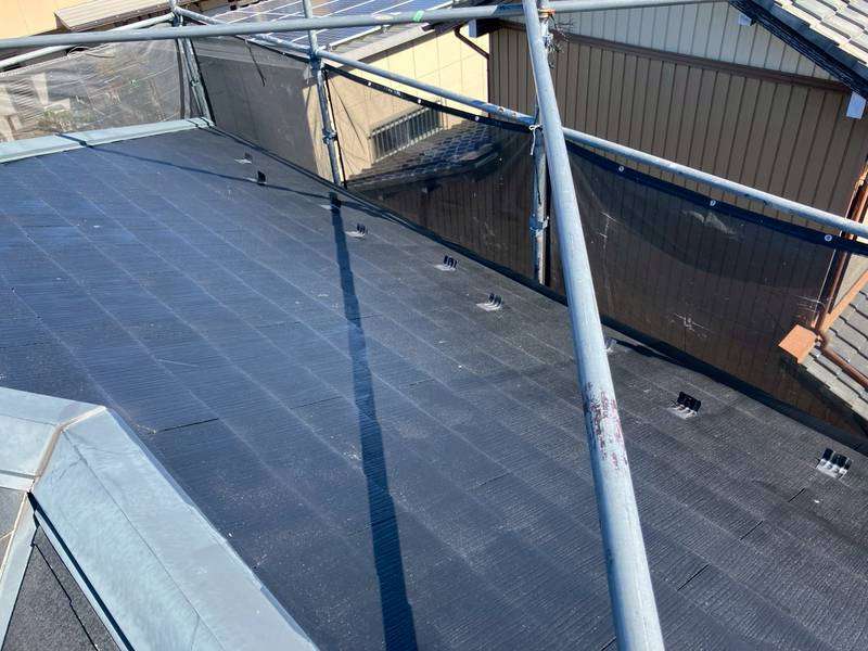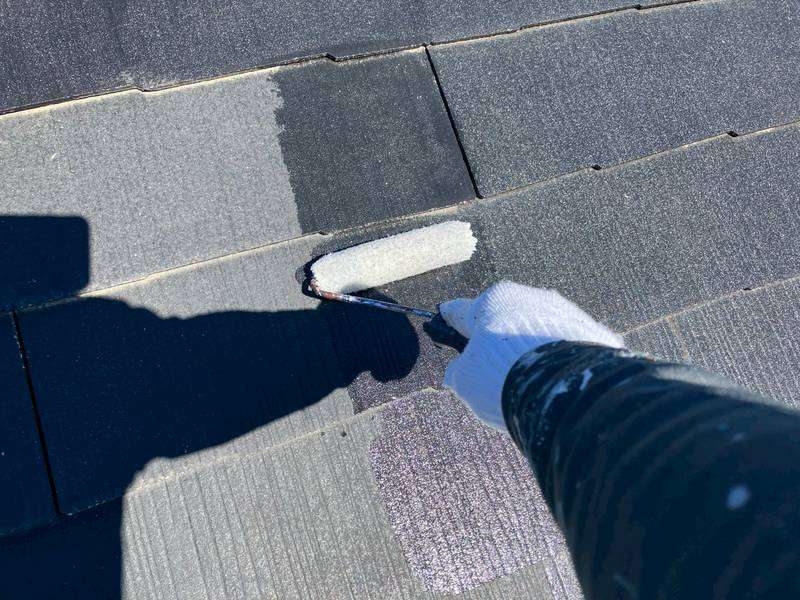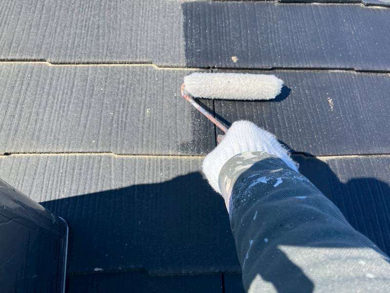 S様邸の昨日の作業内容は、屋根の下塗り1回目塗装作業を行いました。