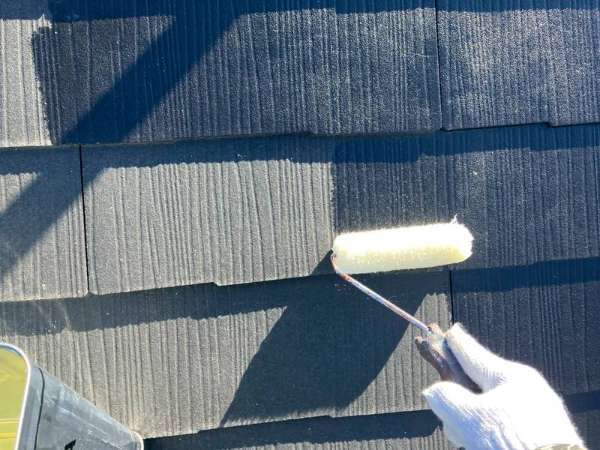 屋根下塗り1回目塗装作業