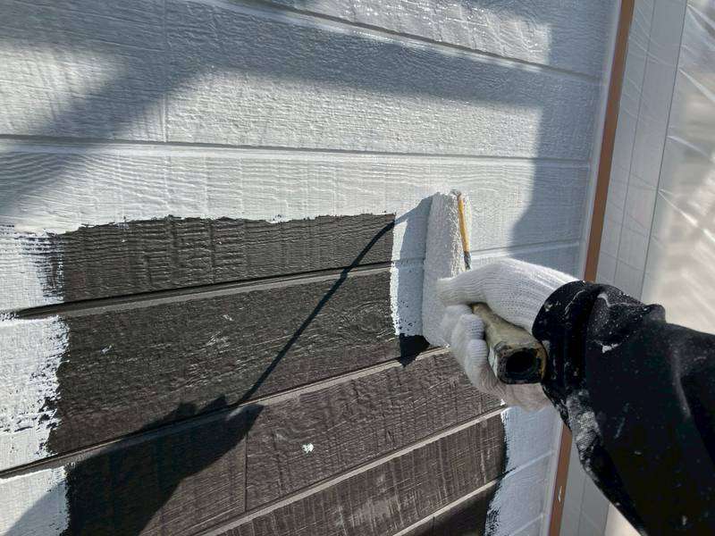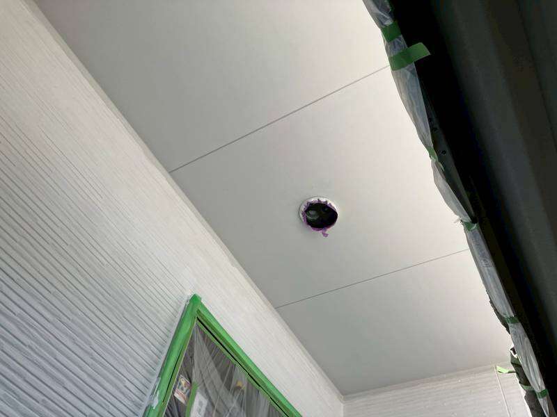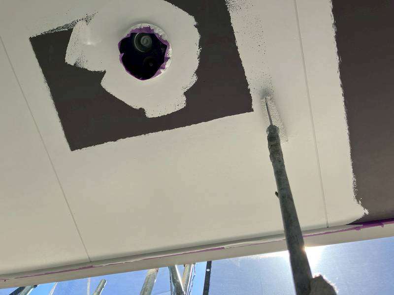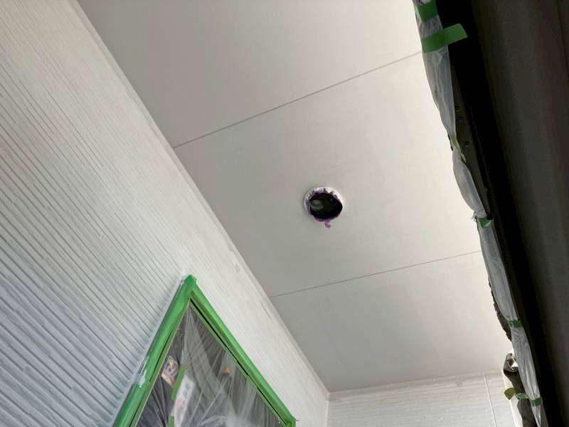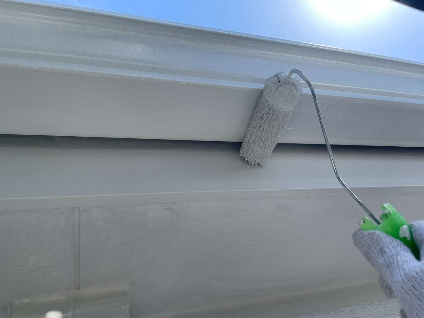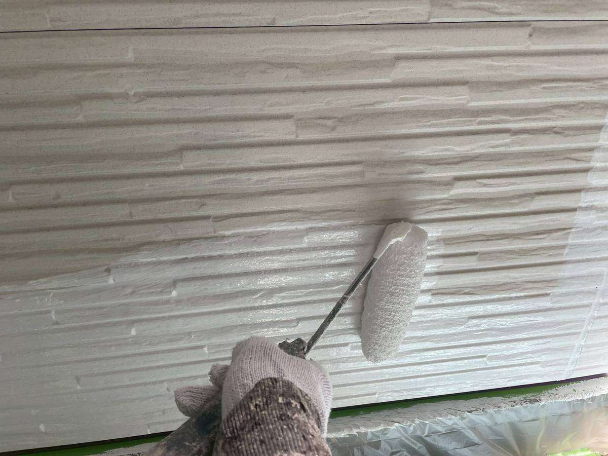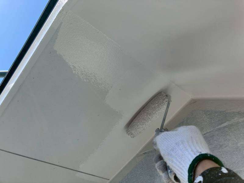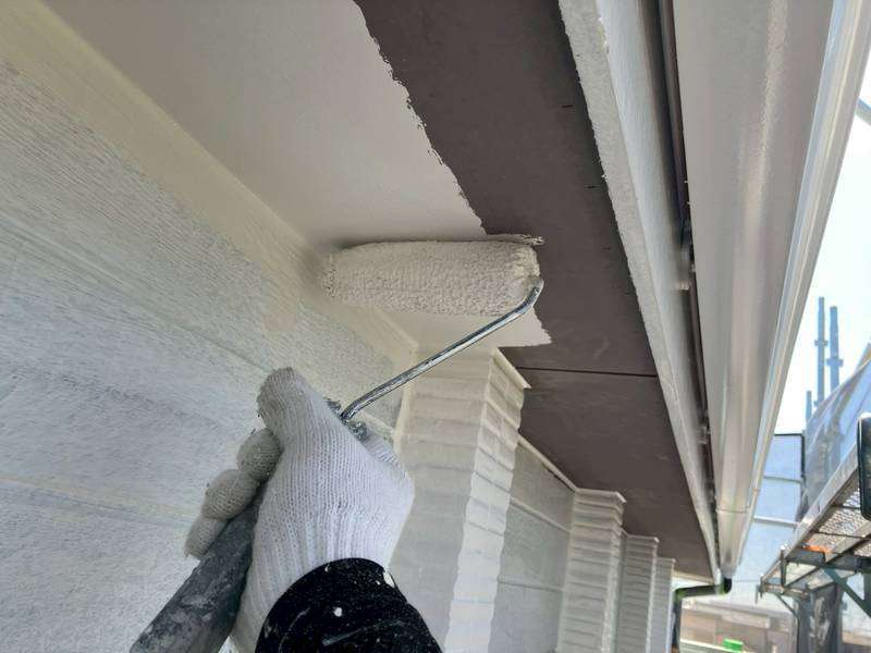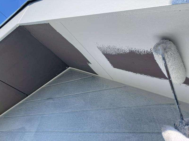 軒天部上塗り1回目塗装作業