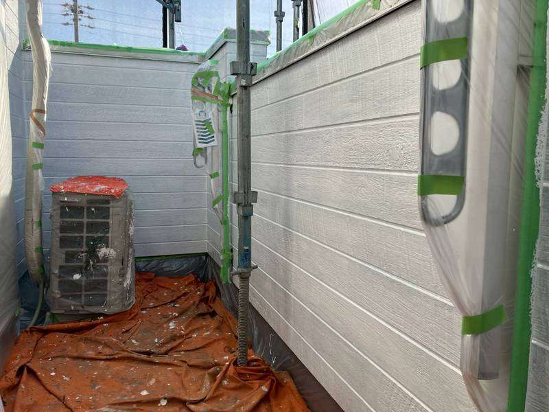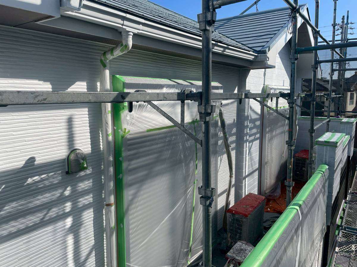 一宮市のS様邸の今日の作業は、南西面外壁の中塗り塗装作業を予定しています。
