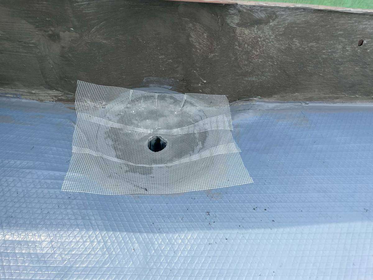 K様邸の昨日の作業は、屋上通気緩衝工法防水工事のプライマー・シート貼付け・改修ドレン・脱気筒取付け・端末処理(シール貼り)作業とサッシ下面台のコーキング(シーリング)打ち替え作業を行いました。