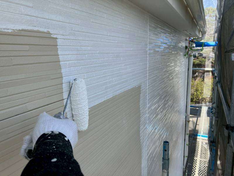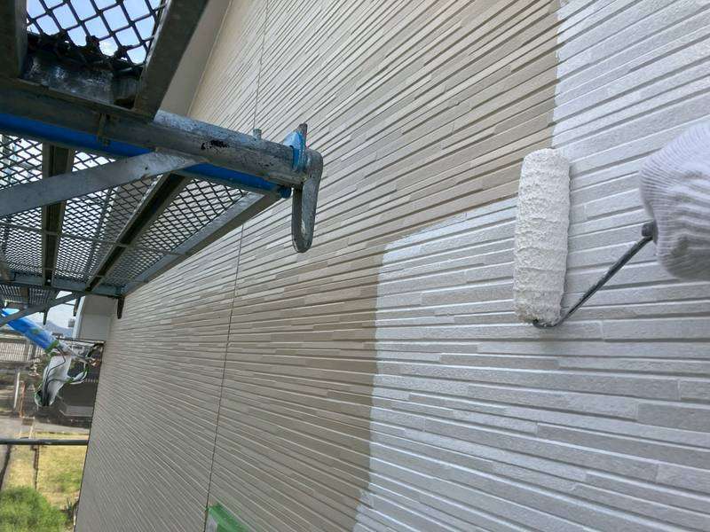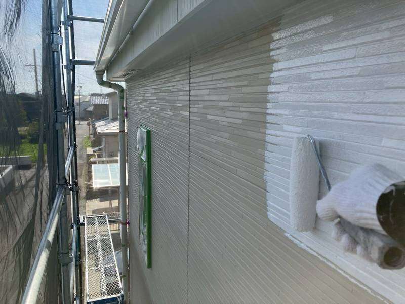 M様邸の昨日の作業は、外壁の下塗り塗装作業を行いました。