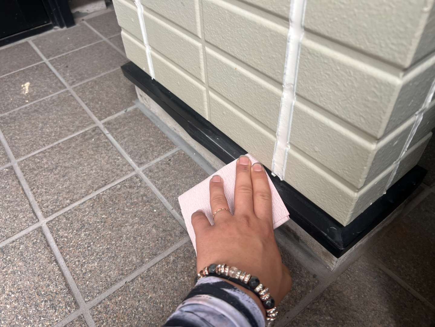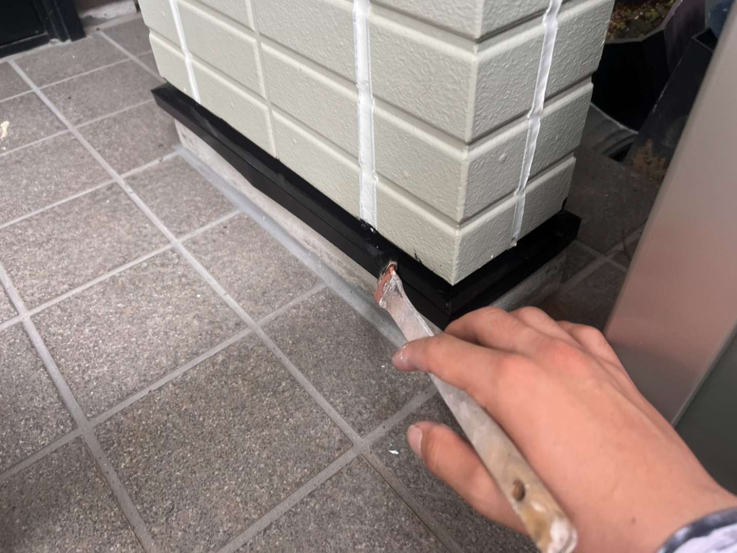 玄関柱水切り下塗り塗装