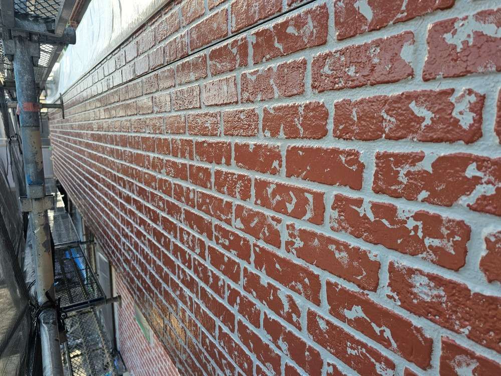 外壁アクセントカラーの柄付け作業