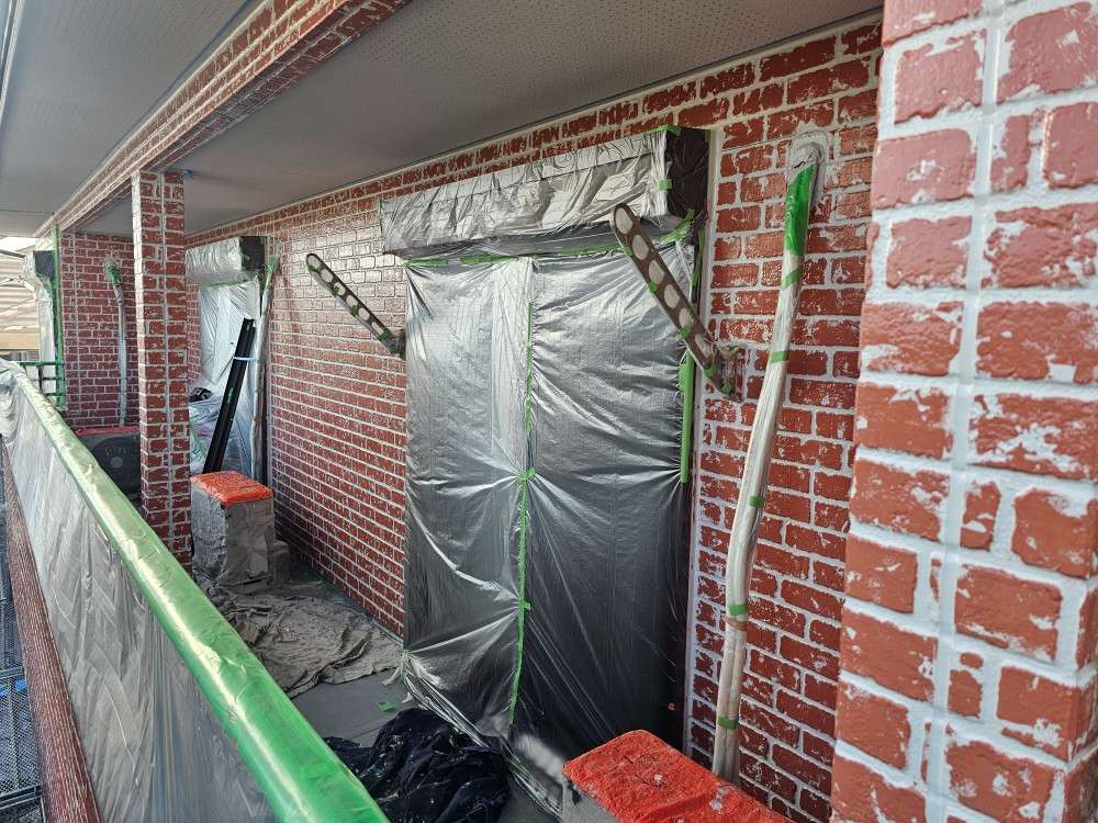 守山区のN様邸の昨日の作業は、外壁のアクセントカラーによる柄付け作業を行っています。