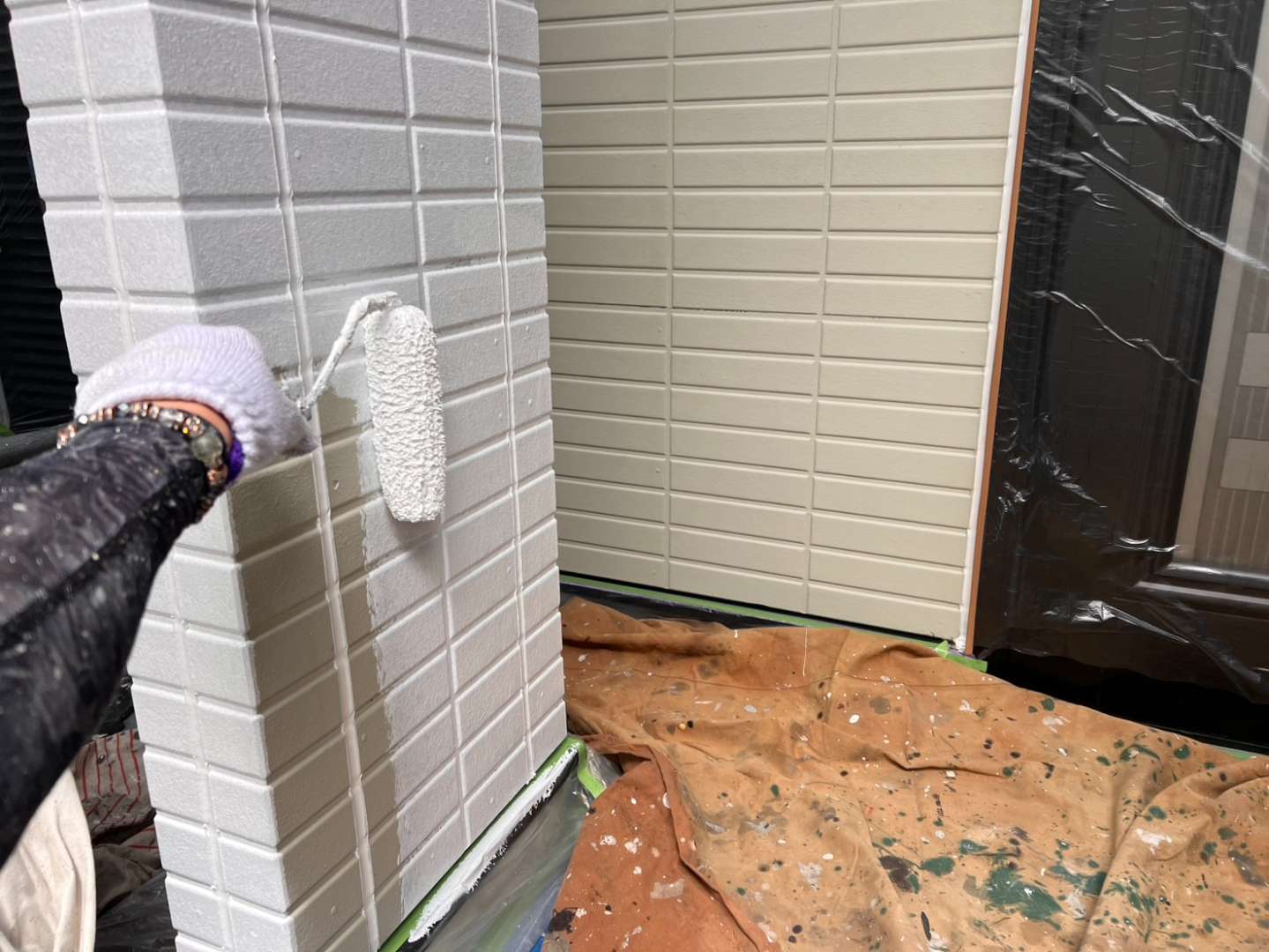 外壁下塗り塗装作業