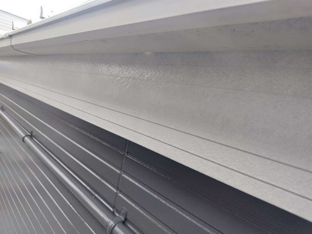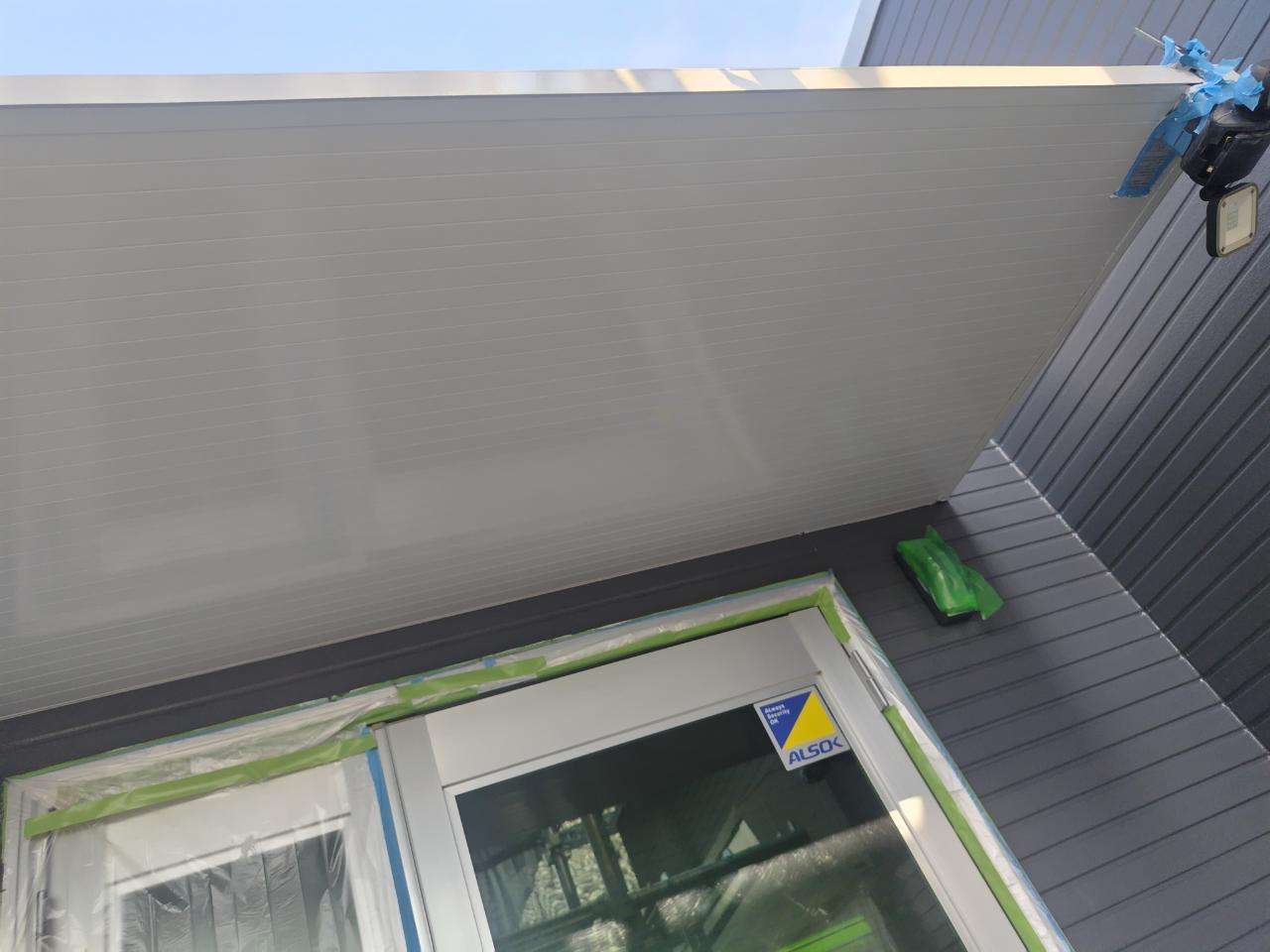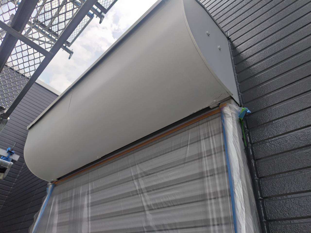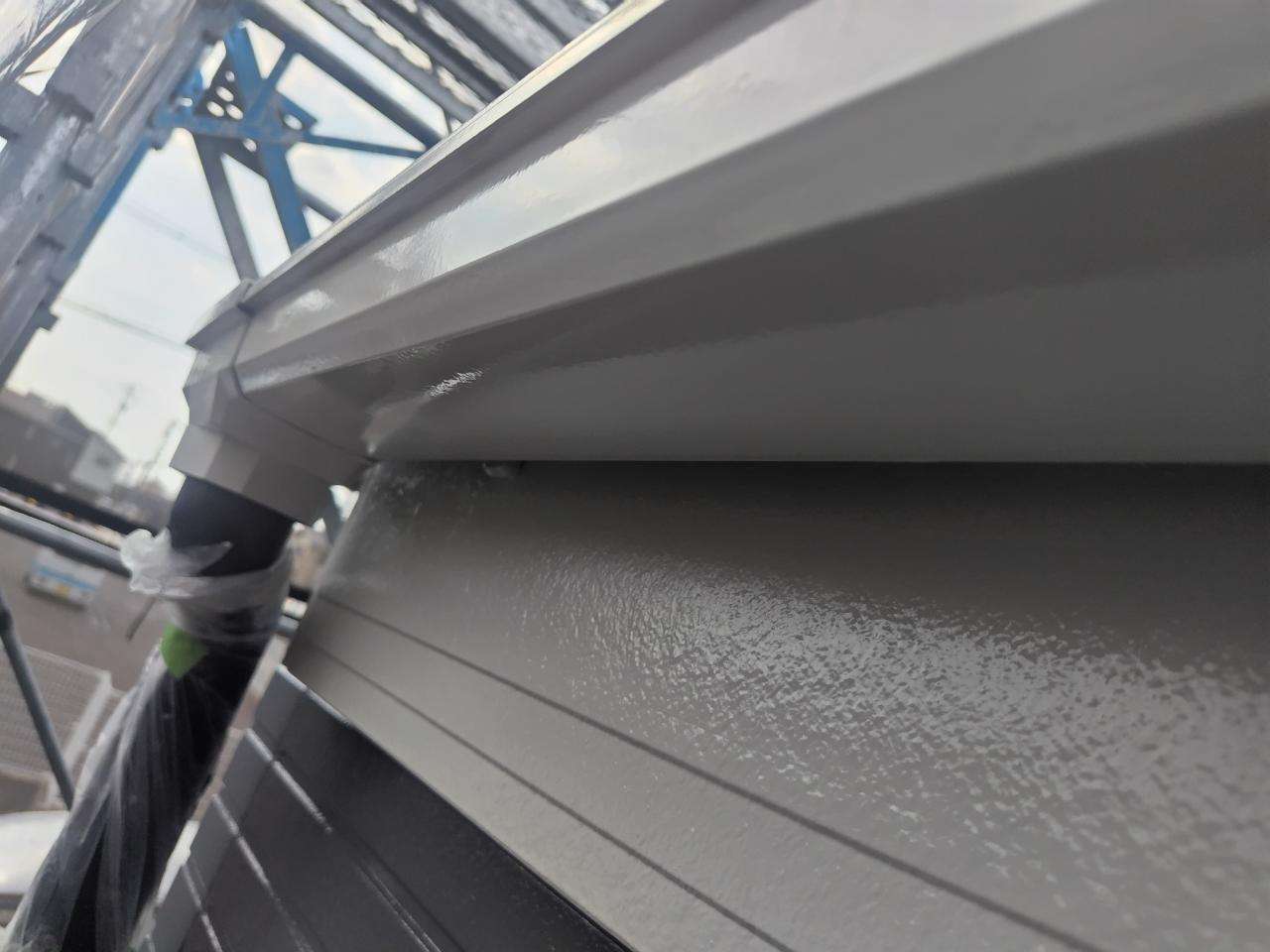 犬山市のT様邸の昨日の作業は、付帯部(鼻隠し板・軒樋・軒天・シャッターボックス・庇・水切り・倉庫)の下塗り作業と上塗り1回目塗装作業を行っています。