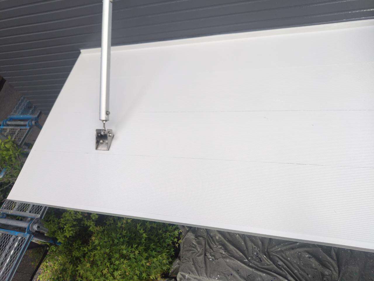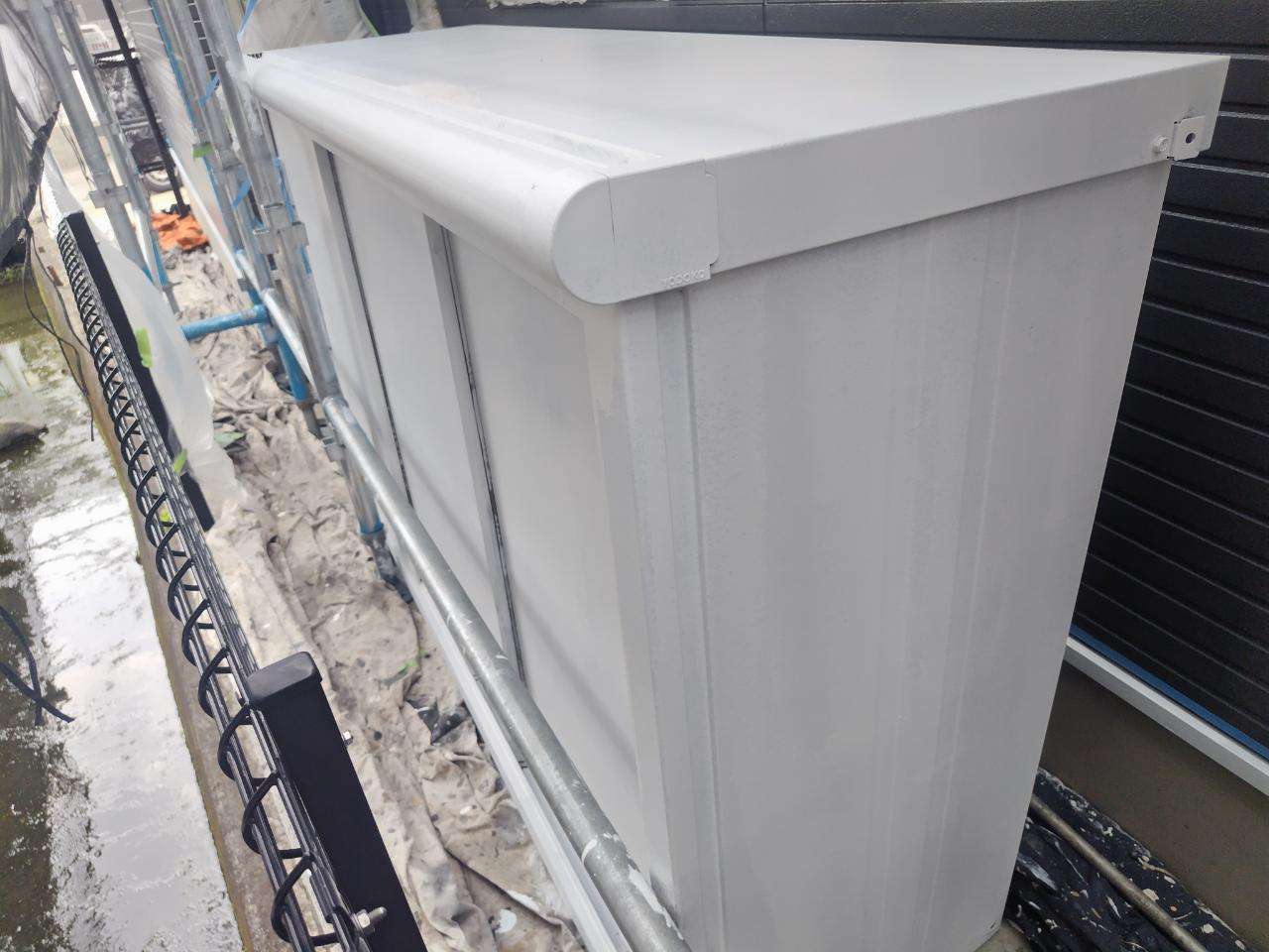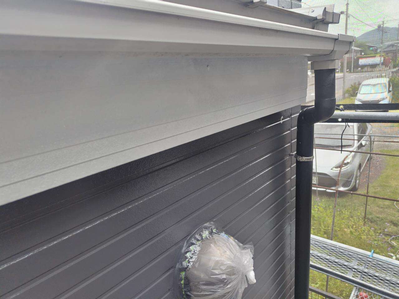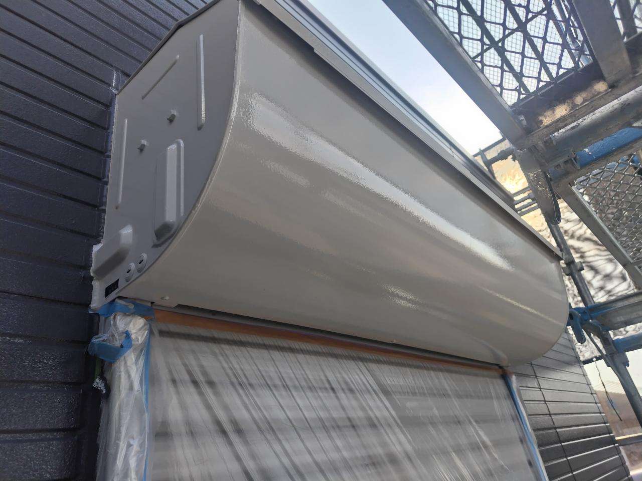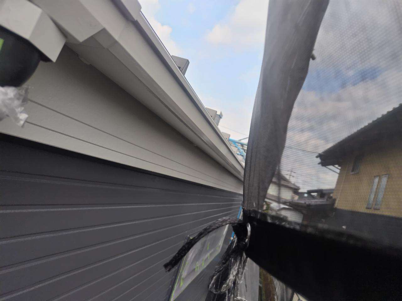 犬山市のT様邸の昨日の作業は、付帯部(鼻隠し板・軒樋・軒天・シャッターボックス・庇・水切り・倉庫)の下塗り作業と上塗り1回目塗装作業を行っています。