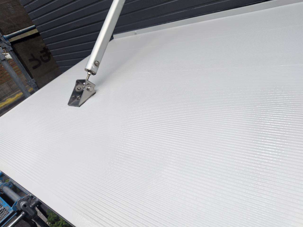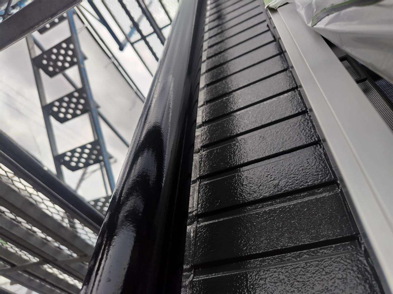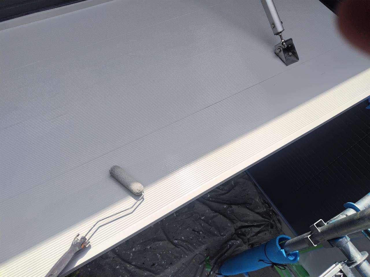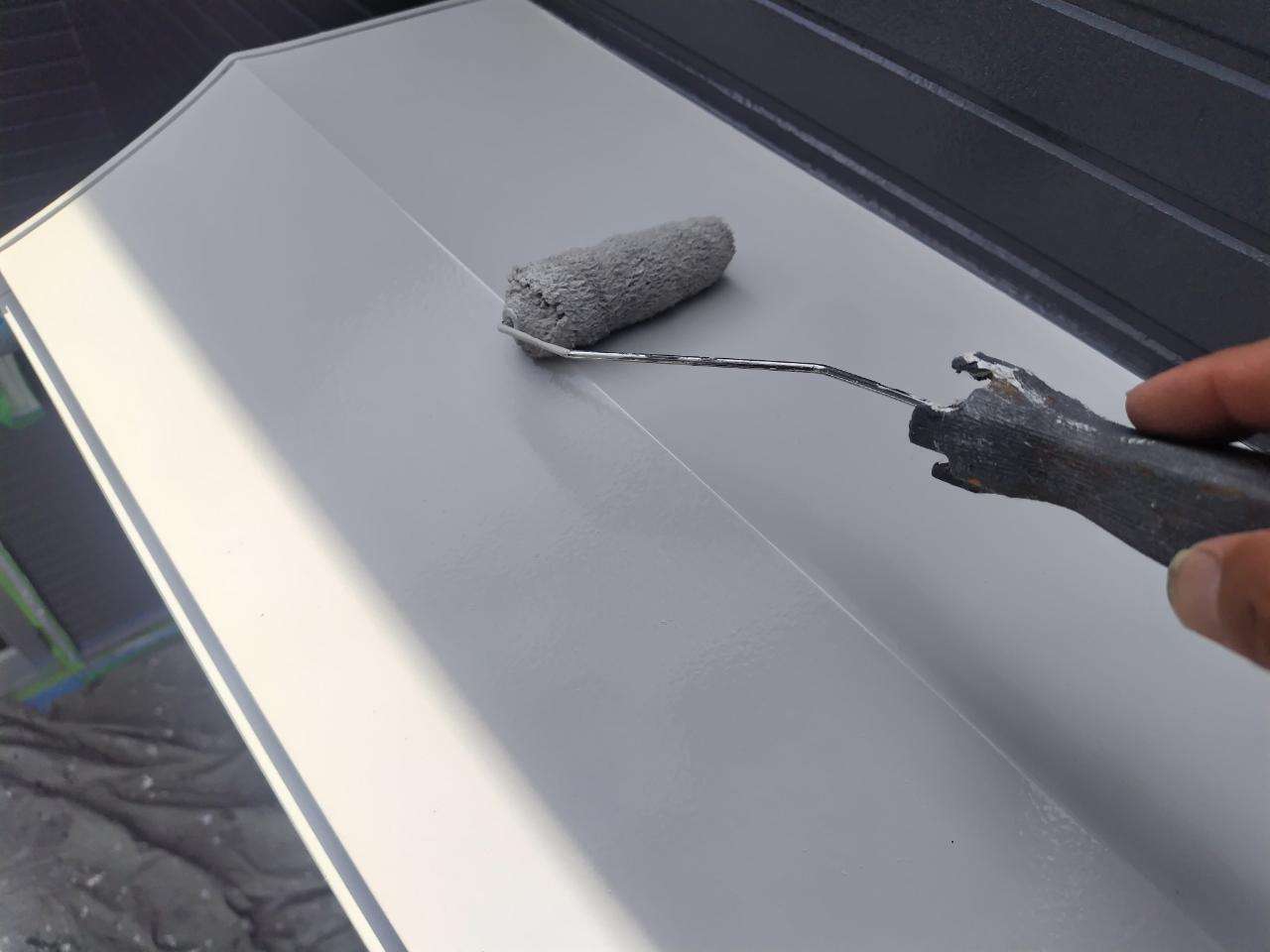 T様邸の昨日の作業内容は、付帯部塗装作業の鼻隠し板・軒樋シャッターボックス・庇・水切りの上塗り2回目塗装、倉庫の上塗り1回目・2回目塗装、エアコン配管カバーと縦樋の上塗り1回目・2回目塗装作業を行っていました。
