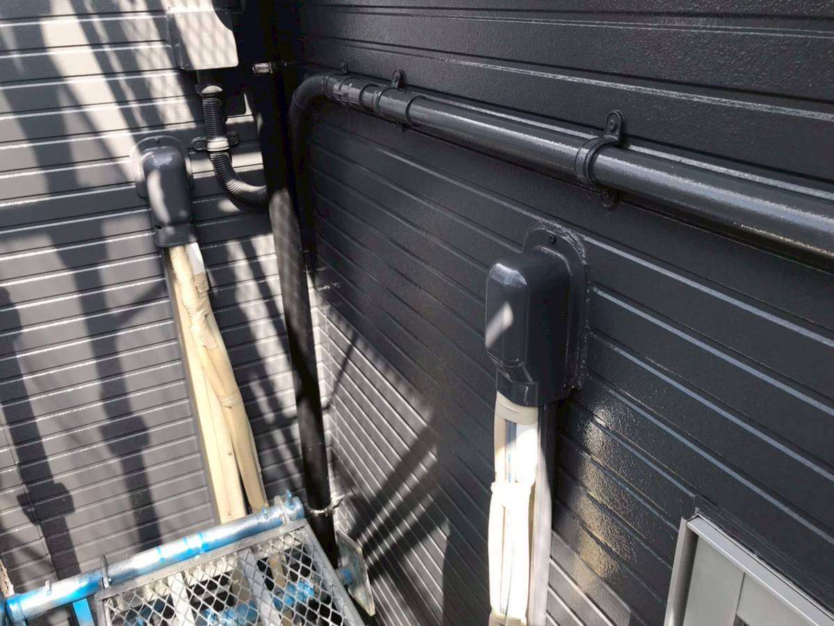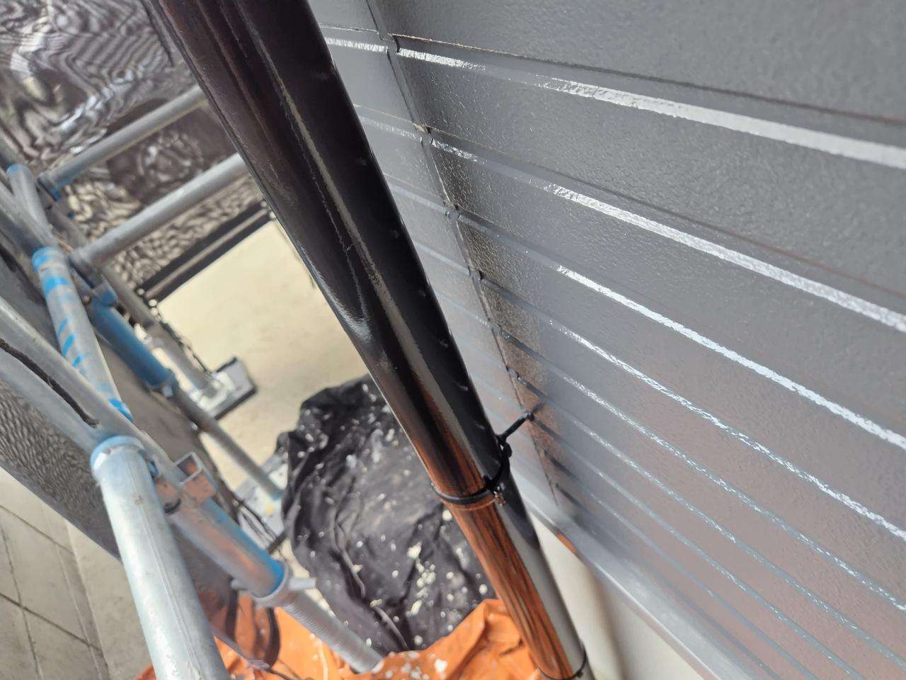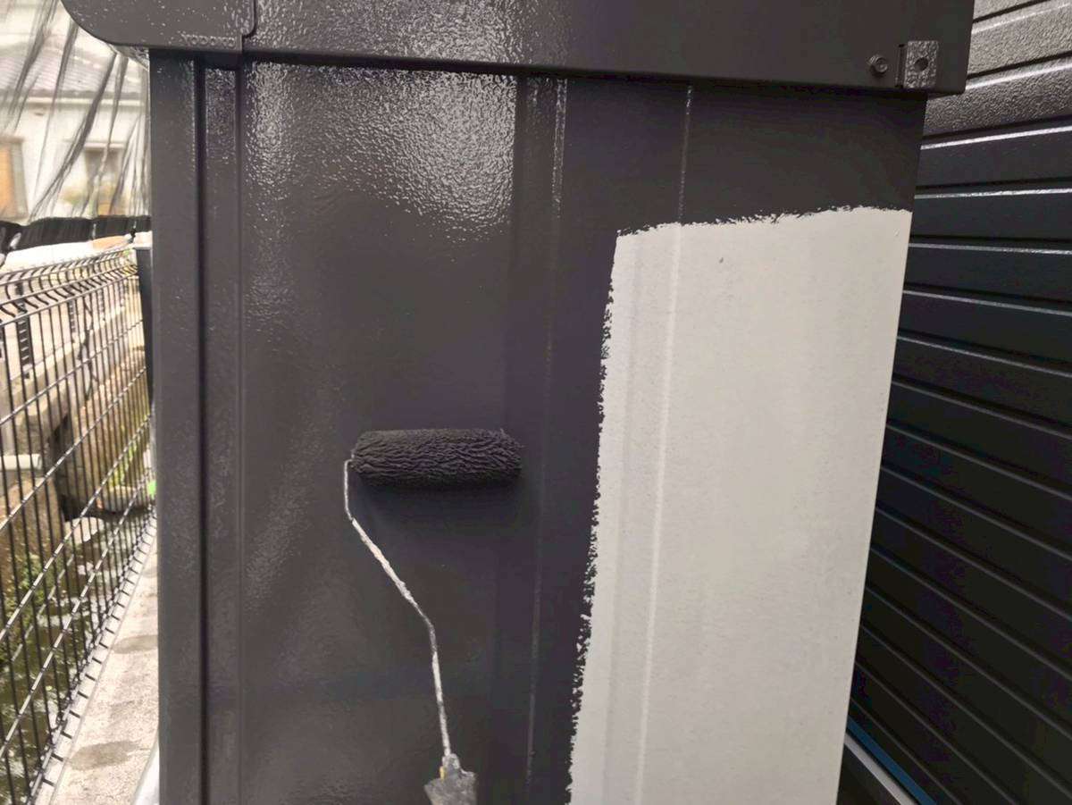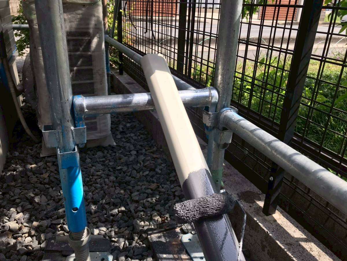 エアコン配管カバー・縦樋上塗り1回目・2回目塗装作業