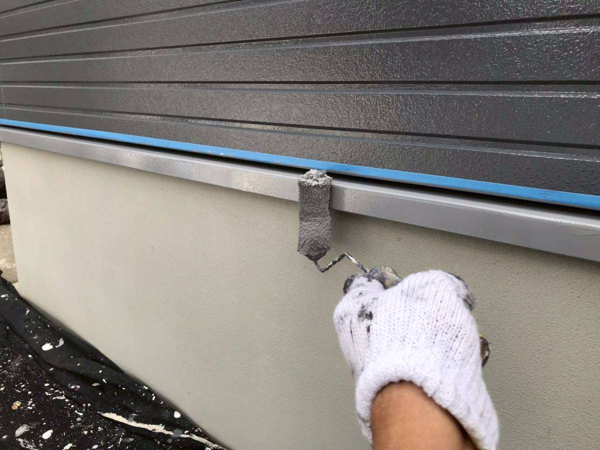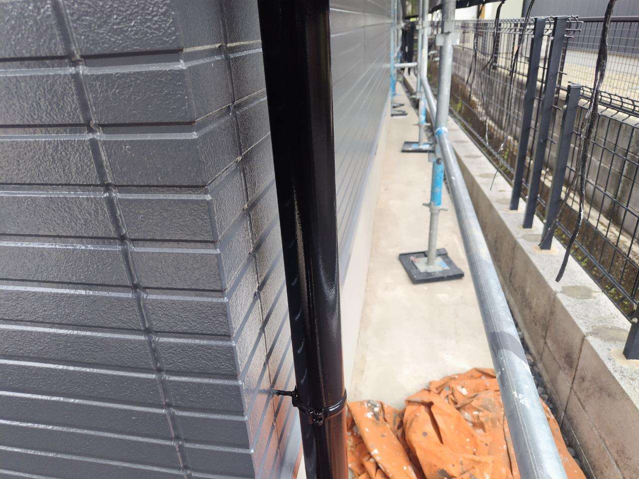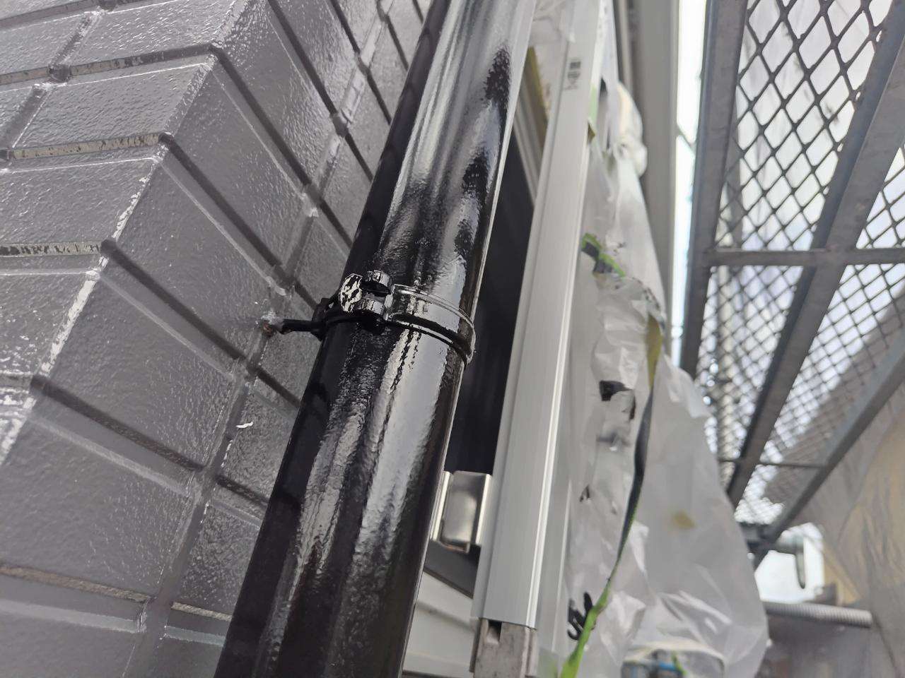 エアコン配管カバー・縦樋上塗り1回目・2回目塗装作業