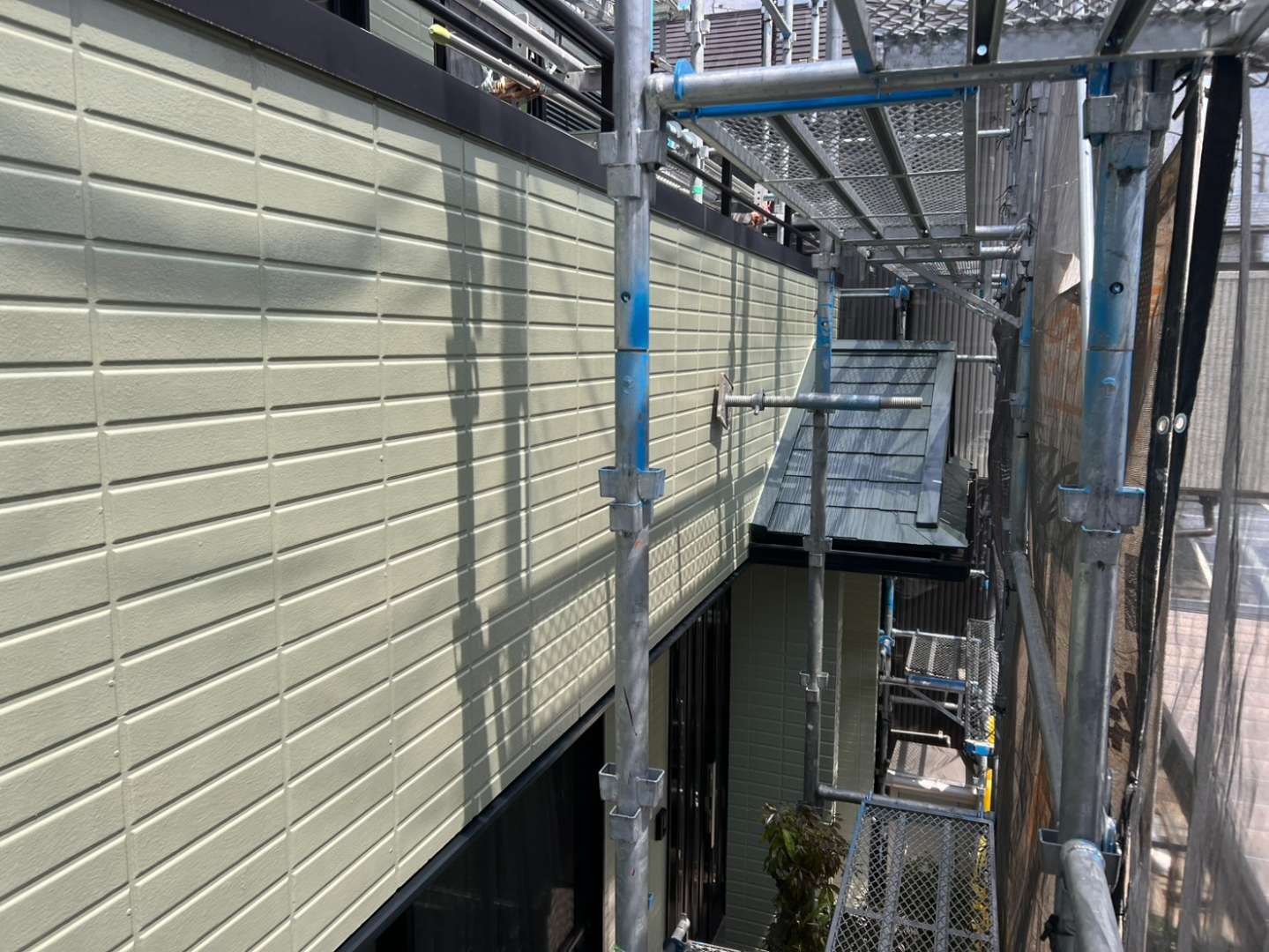 犬山市のF様邸の昨日の作業内容は、外壁塗装部の点検・タッチアップ・清掃作業を行っています。