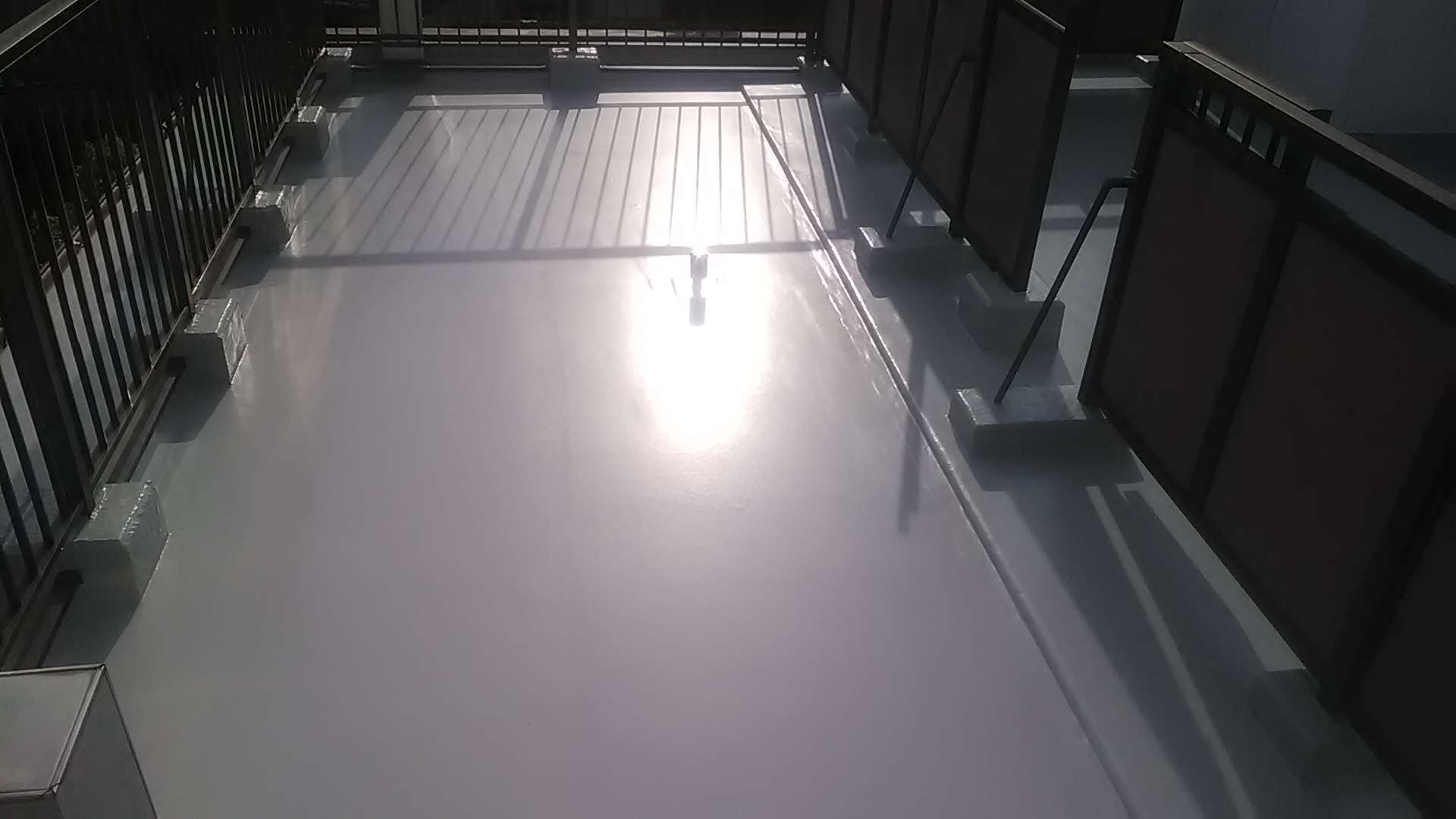 外壁塗装・ベランダFRP防水工事を行いました。 カラーシミュレーションを利用して配色しています。 エアコン配管カバーを外してから、施工して…