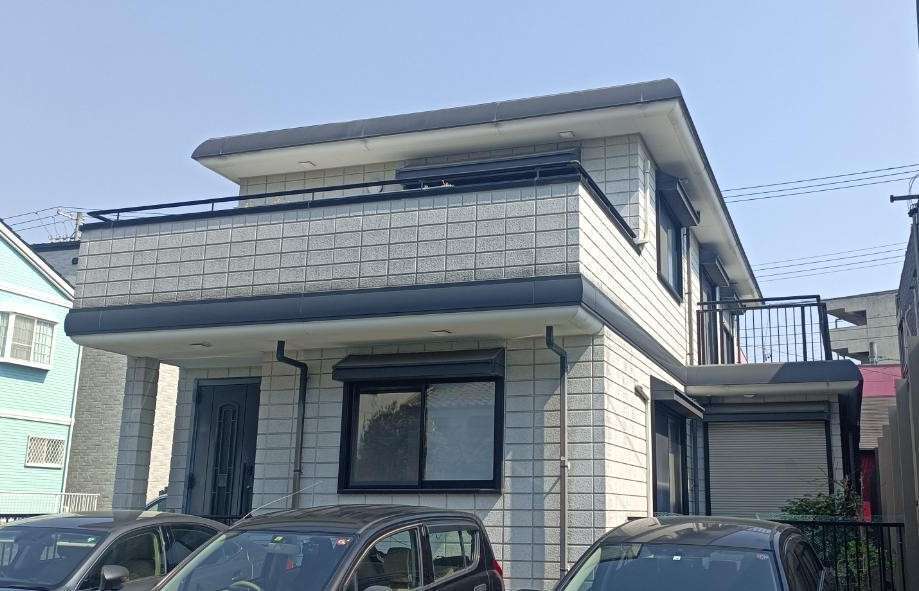 外壁塗装・ベランダFRP防水工事を行いました。 カラーシミュレーションを利用して配色しています。 エアコン配管カバーを外してから、施工して…
